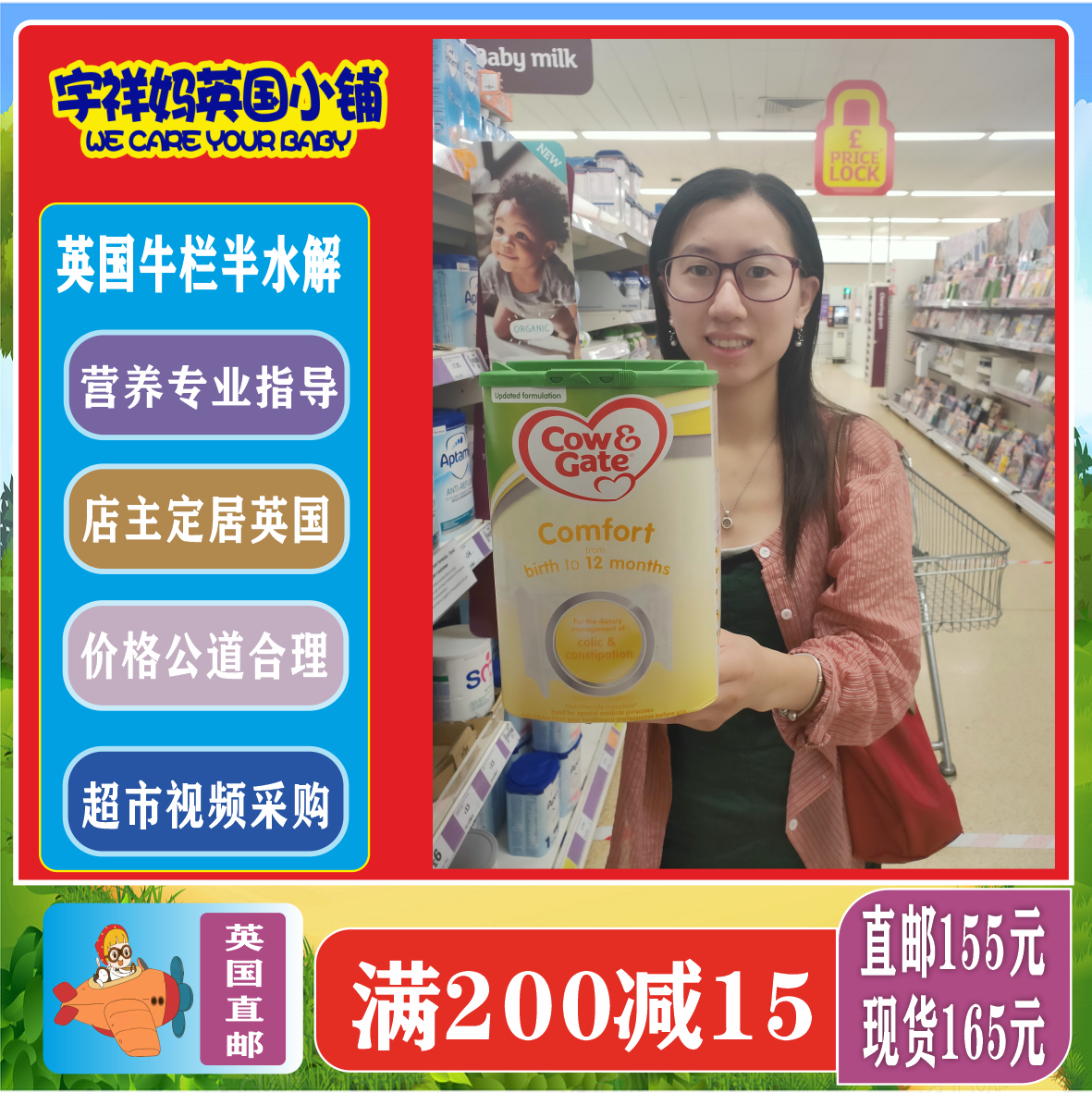 Домашняя доставка!Британская прямая почтовая почта удобная говяжье розовое молоко Породовочный комфорт Полугидролизированный новорожденный с низкой лактозой с низкой лактозой