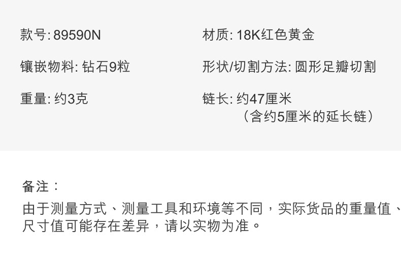 周生生 Бриллиантовая подвеска, ожерелье, золотая цепочка, 18 карат, розовое золото