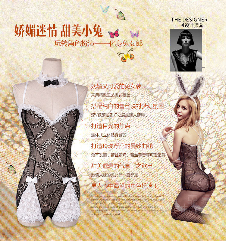 - Черно-белый [набор из 5 предметов для девочки-кролика] + черные чулки в сеточку