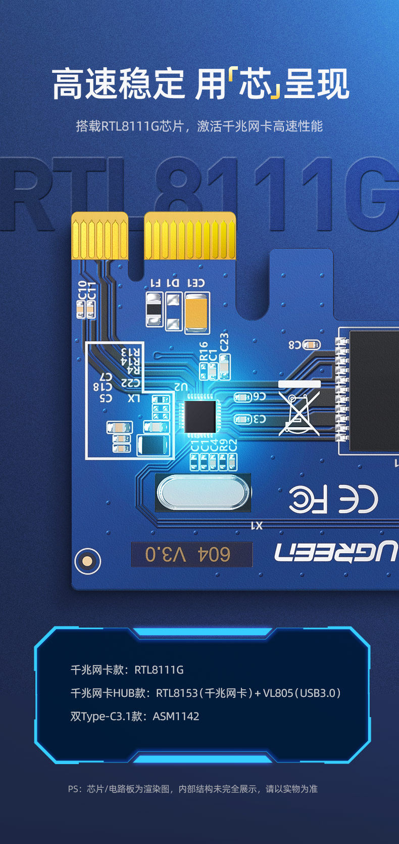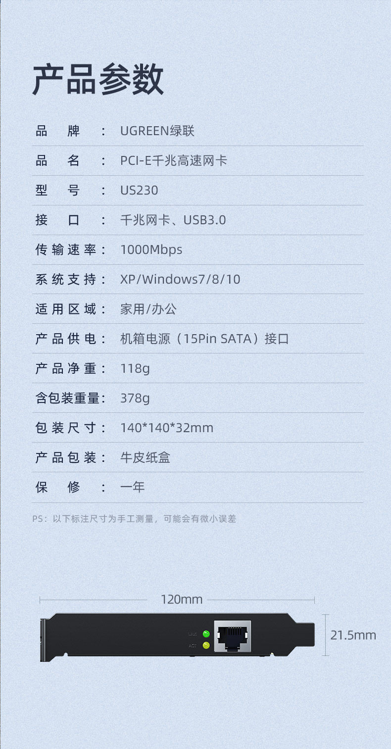 绿联 PCI-E Gigabit Network Card Platform Machine PCIe 1000M Кабельная интернет-консоль Независимая карта расширения USB3.0 Двойной интерфейс RJ45