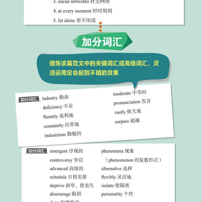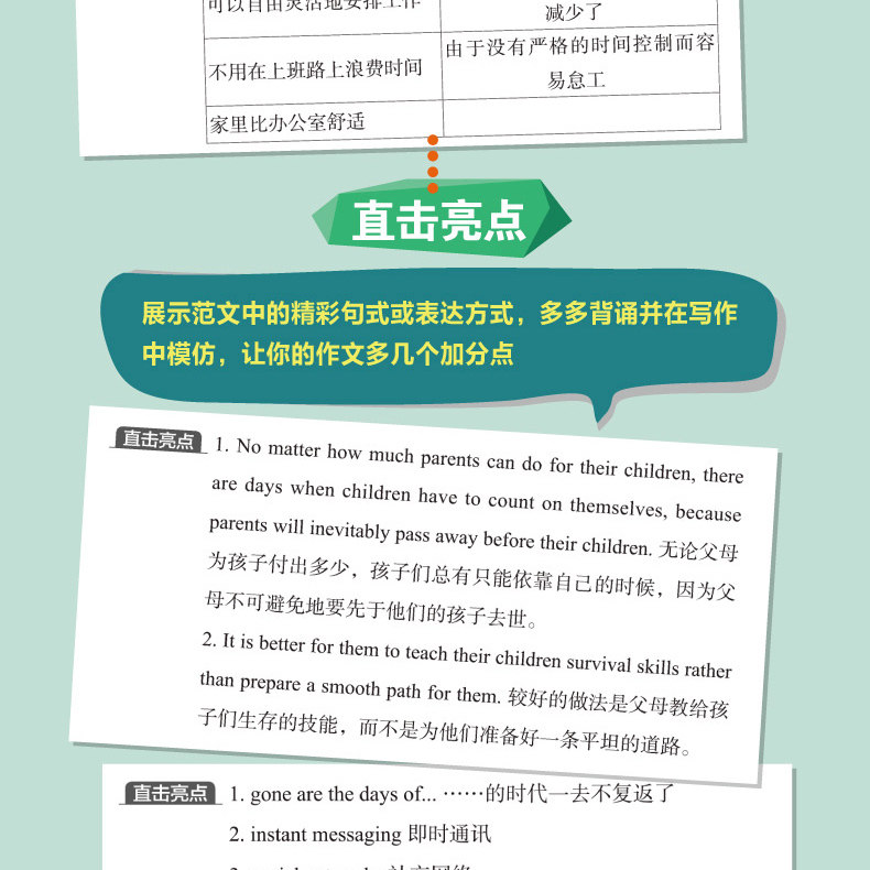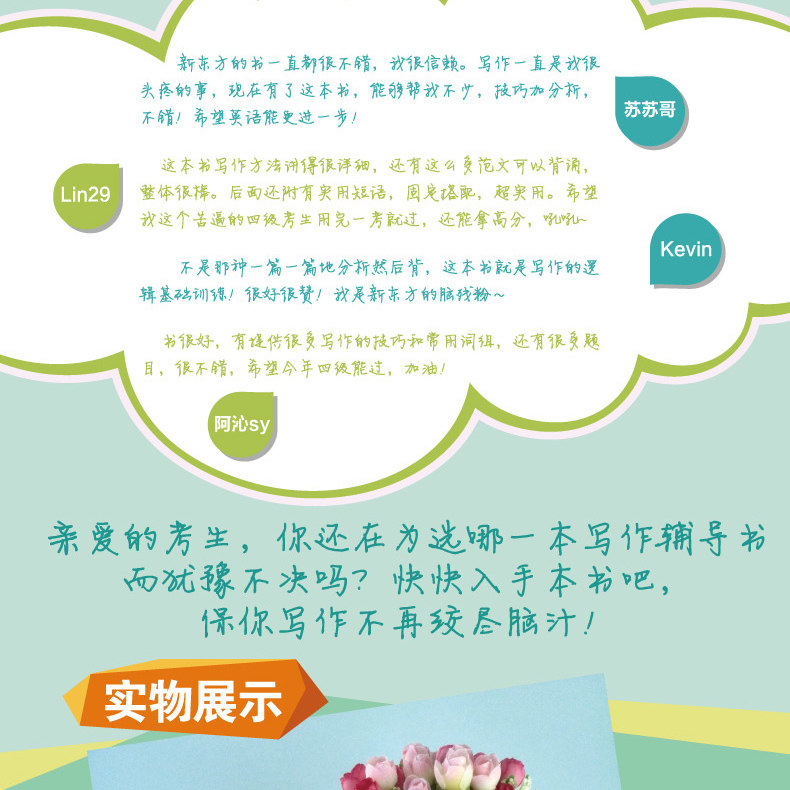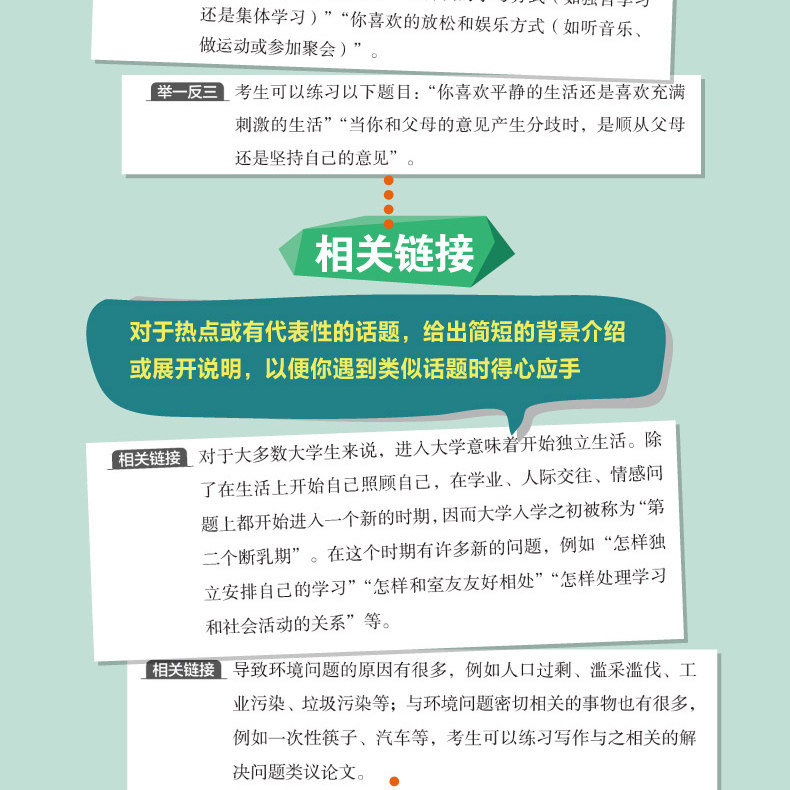Книга «Специальная подготовка для университетского английского уровня 4 и 6» - это книга по репетиторству, специально подготовленную для кандидатов на уровне 4 и 6.В книге есть как методы написания, а также большое количество тем, которые пишут, для практики рук.Следует отметить, что эта книга не является анализом эссе, а затем чтением кандидатов, а логической способностью обучения и письма, и стремится позволить кандидатам значительно улучшаться после обучения.Эта книга также прокомментировала или прокомментировала основные моменты или структуры в эссе, и предсказывала другие подобные вопросы, основанные на некоторых вопросах, чтобы помочь кандидатам учиться у одного и трех, и гибко справляется с различными типами темах письма.