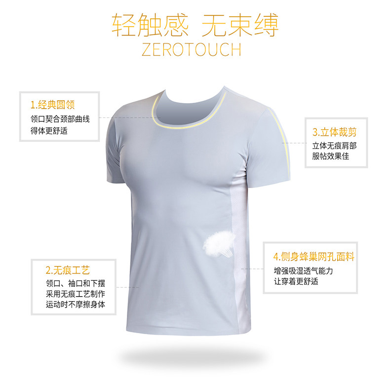 梦邦 Шелковая ультратонкая дышащая спортивная футболка с коротким рукавом с круглым воротником, короткий рукав, простой и элегантный дизайн, быстрое высыхание