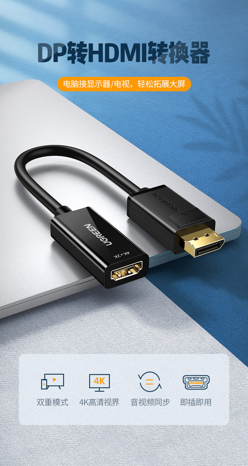 绿联 DP к HDMI Адаптер 4K Высоко определения кабельная компьютерная графическая карта Подключение к экрану проектора интерфейса HDMI HDMI