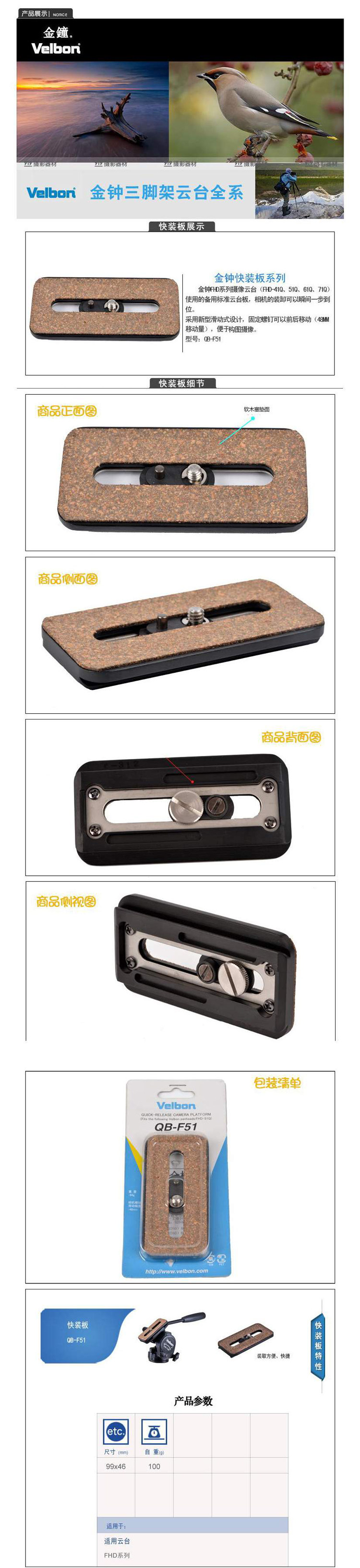 Velbon Golden Bell QB-F51 QB-F51N Фотография Камера Глобальная серия FHD Выделенная экспрессная плата