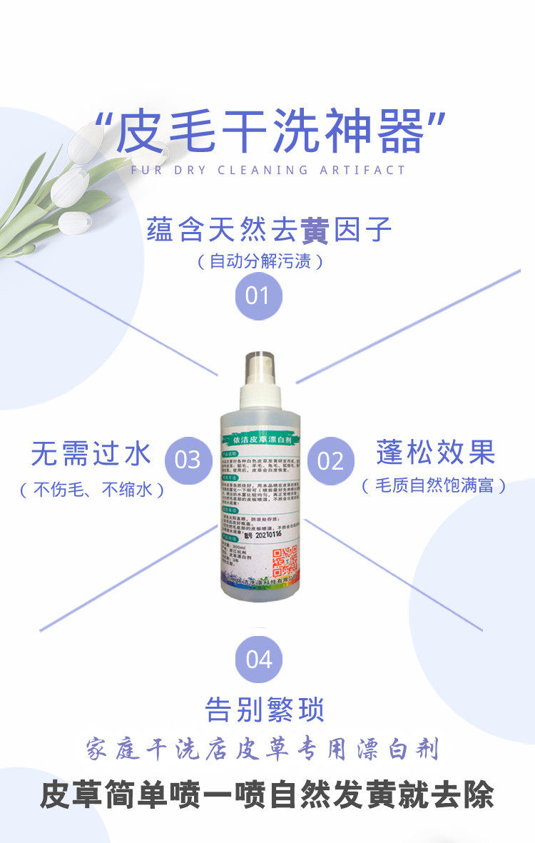 Подходит для всех видов белого меха, таких как:Этот продукт легко наносится на отбеливатель кроличьего меха, шерсти и норки. Вам нужно лишь просто распылить его на внешний слой меховой одежды.