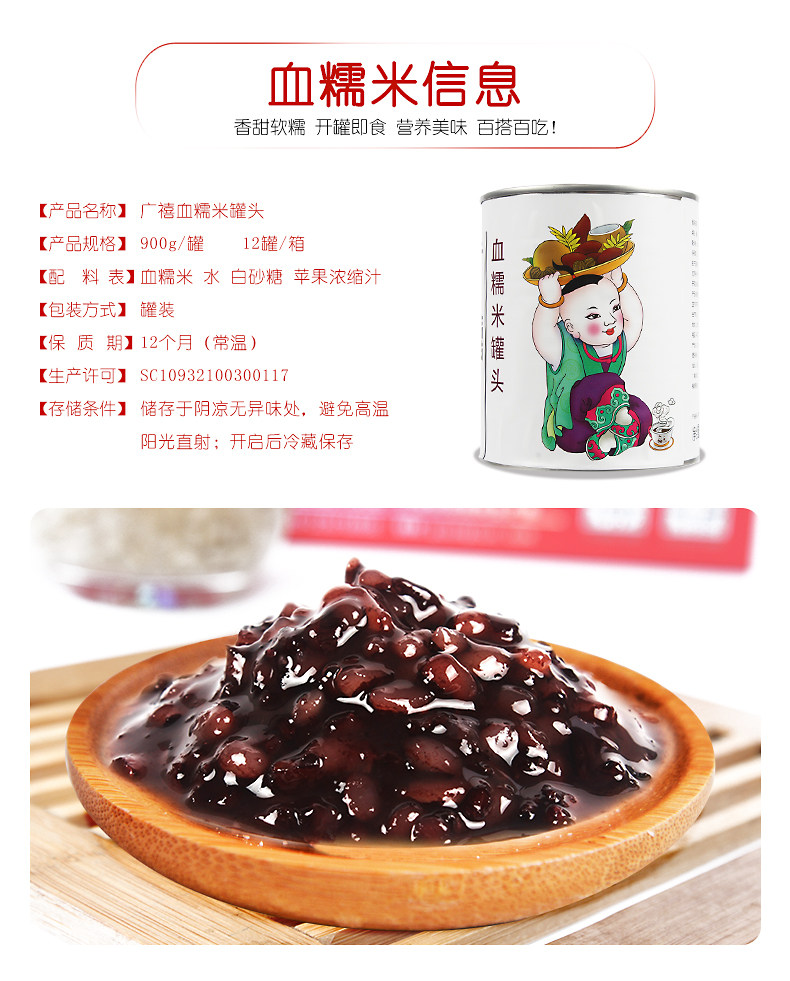 Гуанси -кроваво -кровавый рис 900G может открыть кастрюлю фиолетового риса черного риса консервированных тете