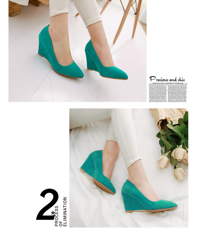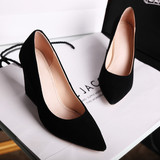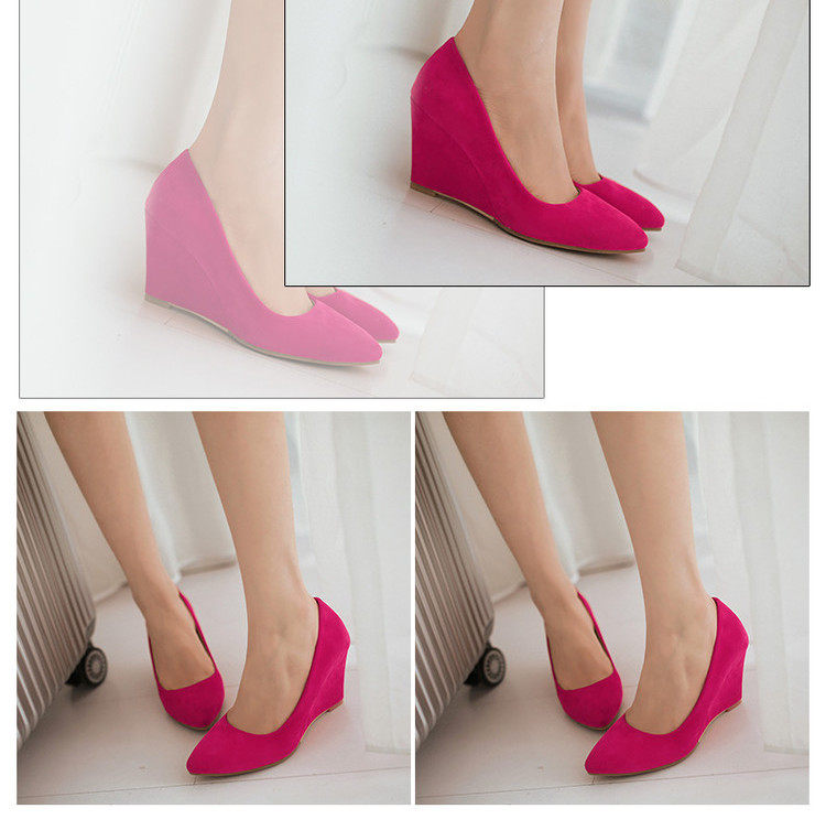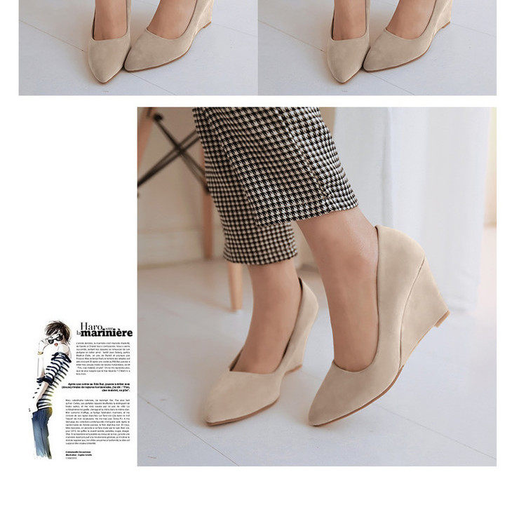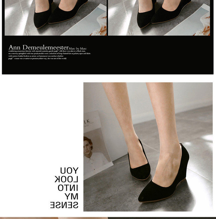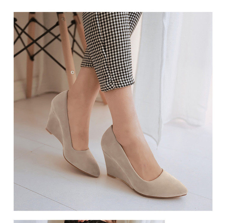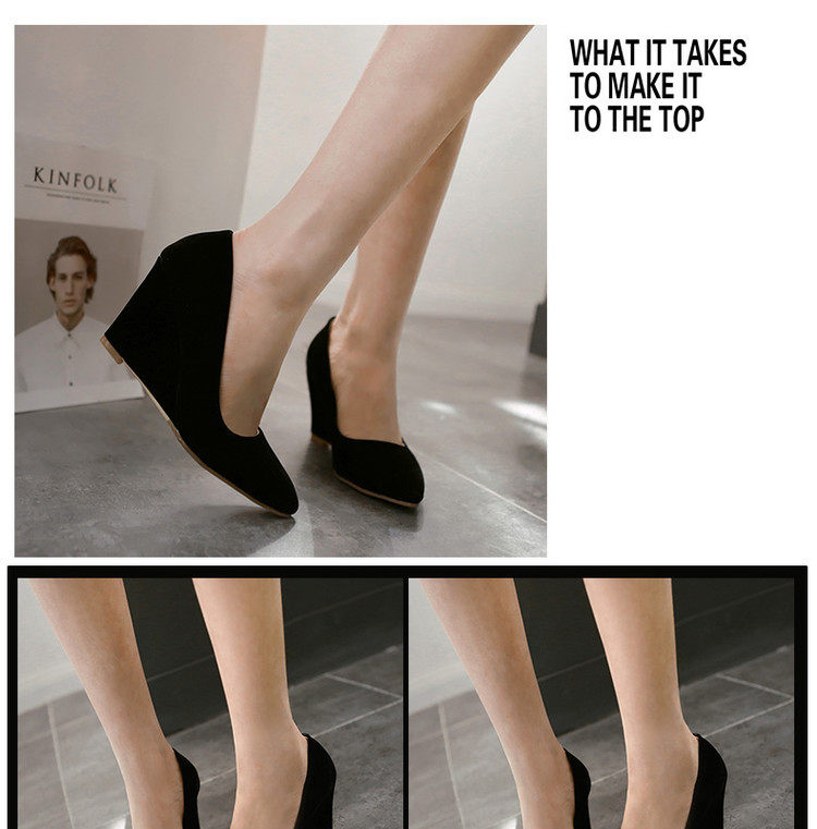Замшевые весенние туфли, большие размеры, туфли на танкетке с острым носком, женские рабочие туфли на высоком каблуке с неглубоким носком, женская черная всесезонная обувь на плоской подошве