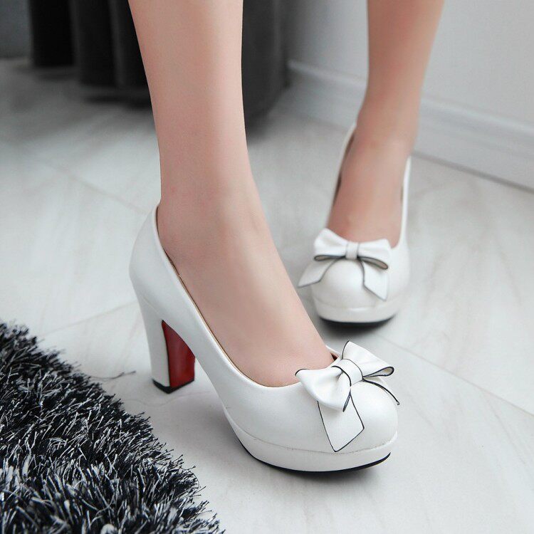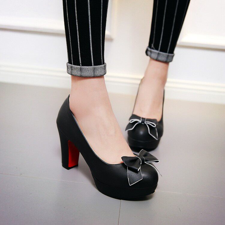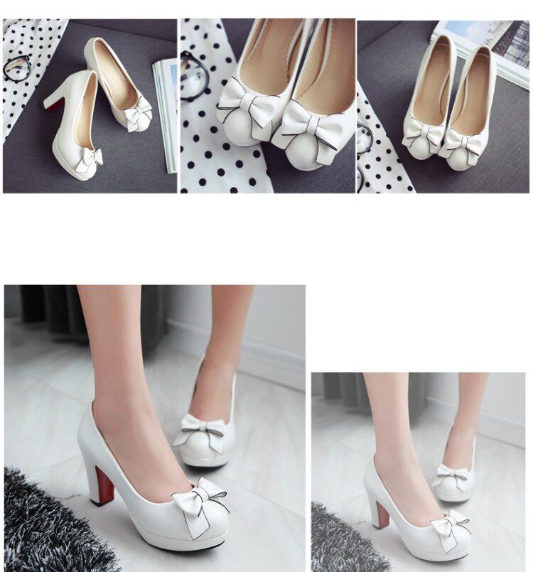 Летние милые туфли на высоком каблуке с низким вырезом с бантиком, тренд 2017
