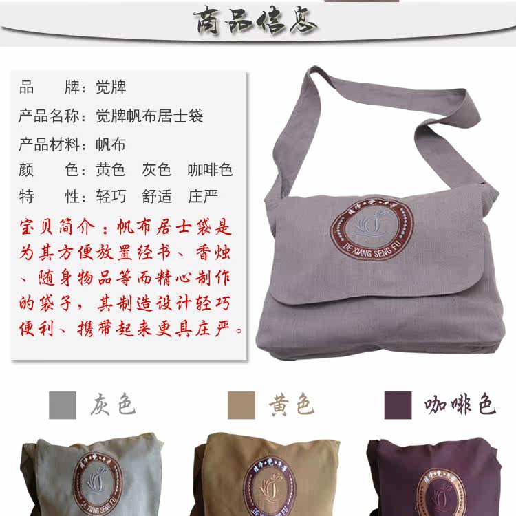 Juepai Canvas Vans Bao Monk Bag Monk Sags Сумки сумки Zen Bags Buddhism Chao Mountain Bag СЧАСТИТЕЛЬНА