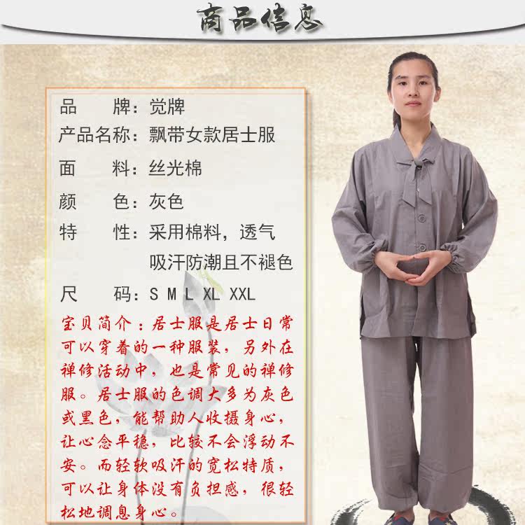 Jue Brand Coffee Color Grey Ribbon Women's Juvenile Service Pure Cotton Spring, лето, осень, буддийская медитационная служба Haiqing Jushi Service