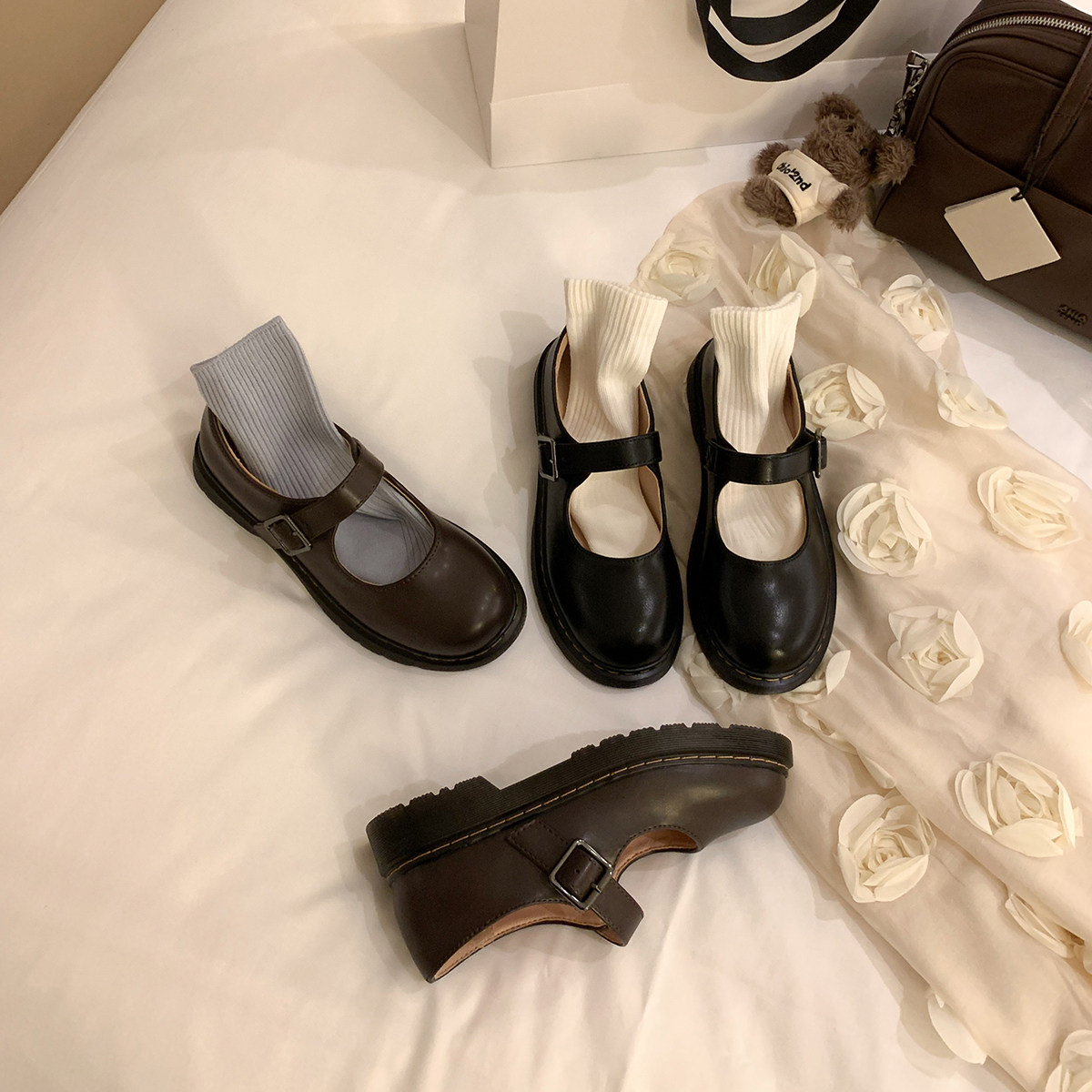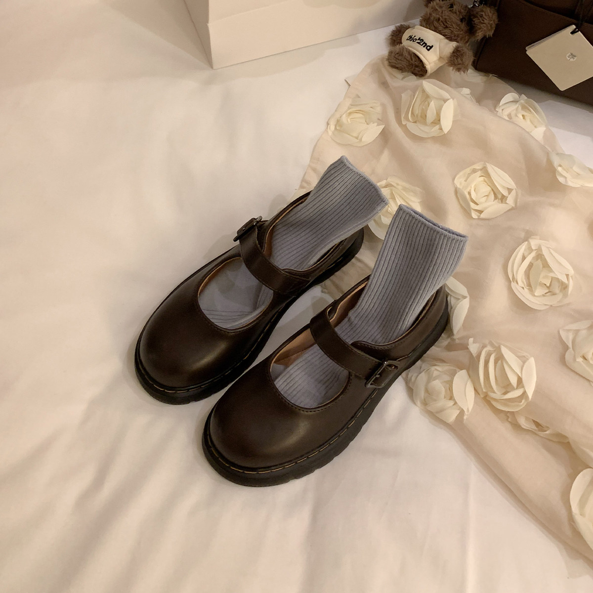 伯爵猫 Антикварные туфли Мэри Джейн с плоской подошвой, большой размер 414243, женские туфли на одинарной платформе JK, маленькие кожаные туфли в студенческом стиле с круглым носком, весна и лето