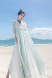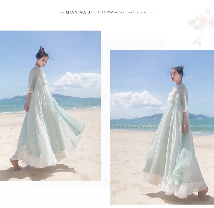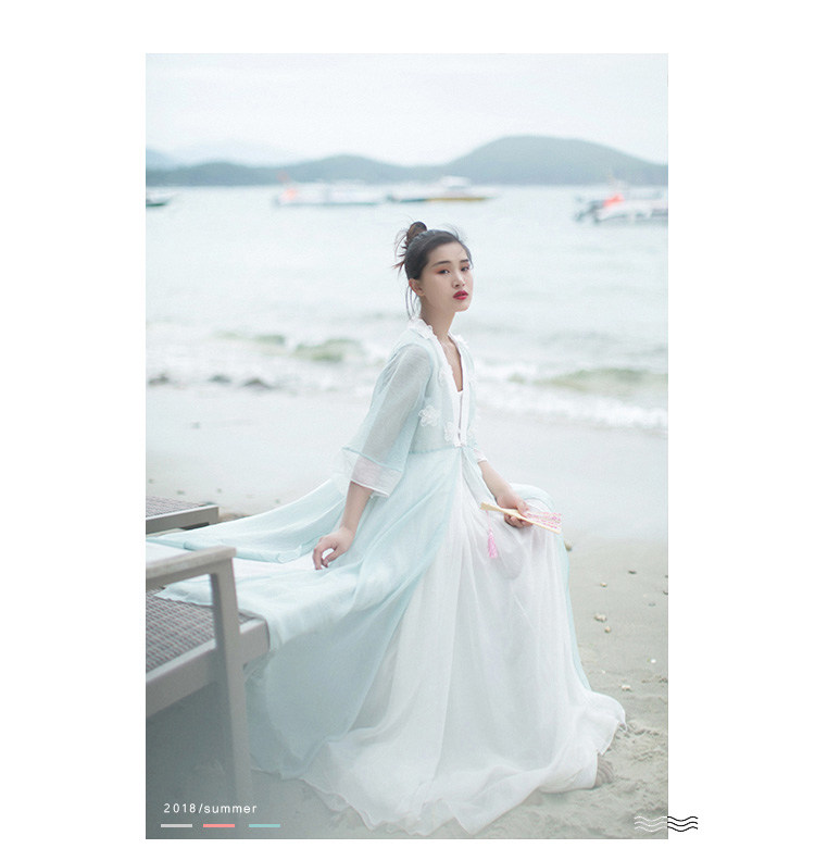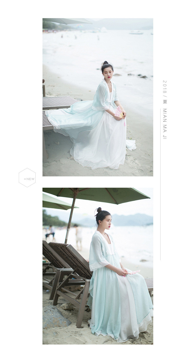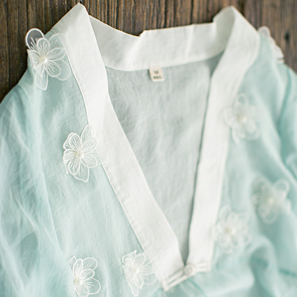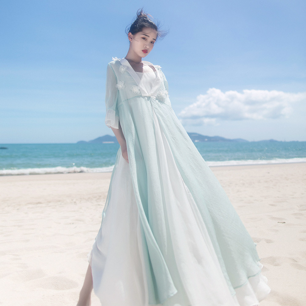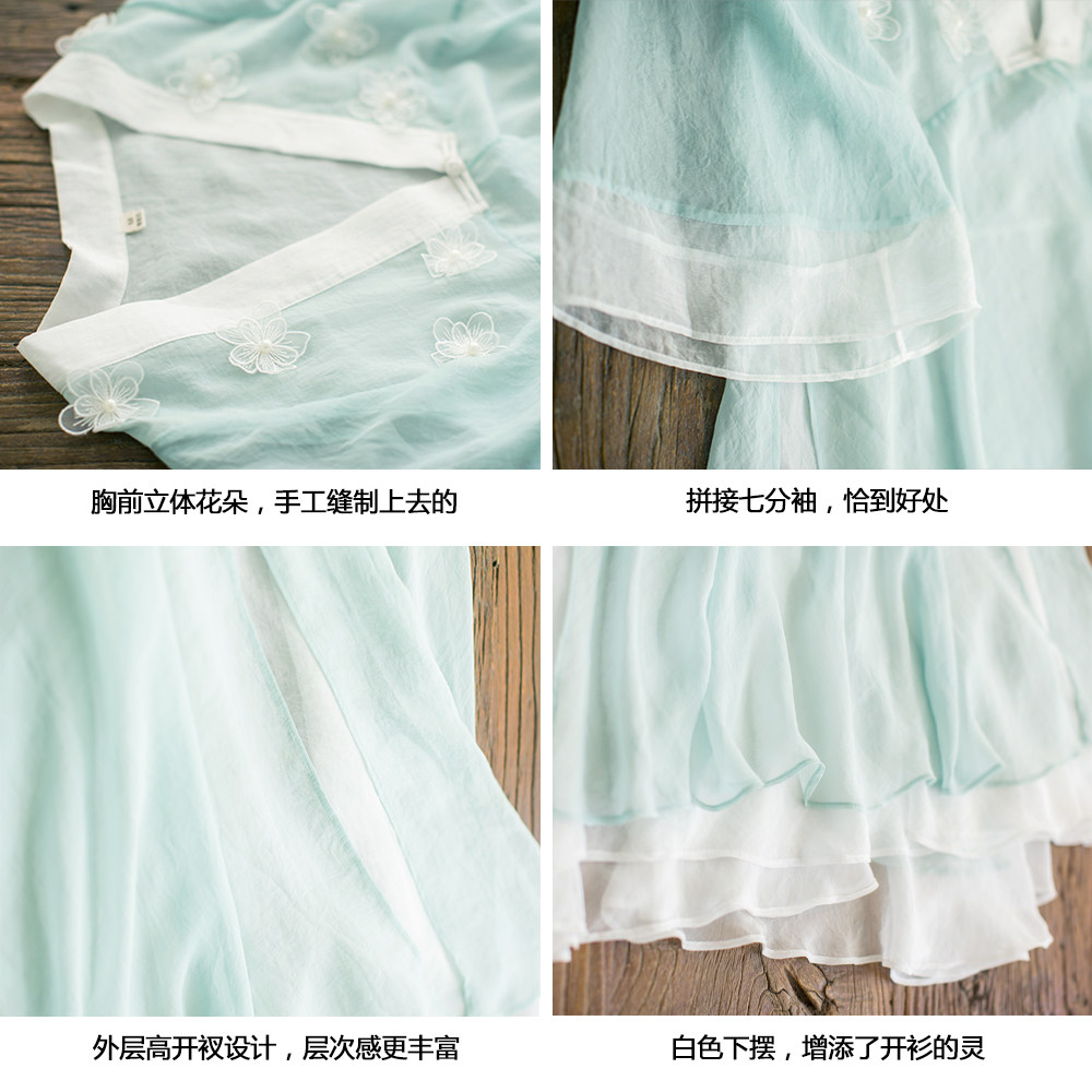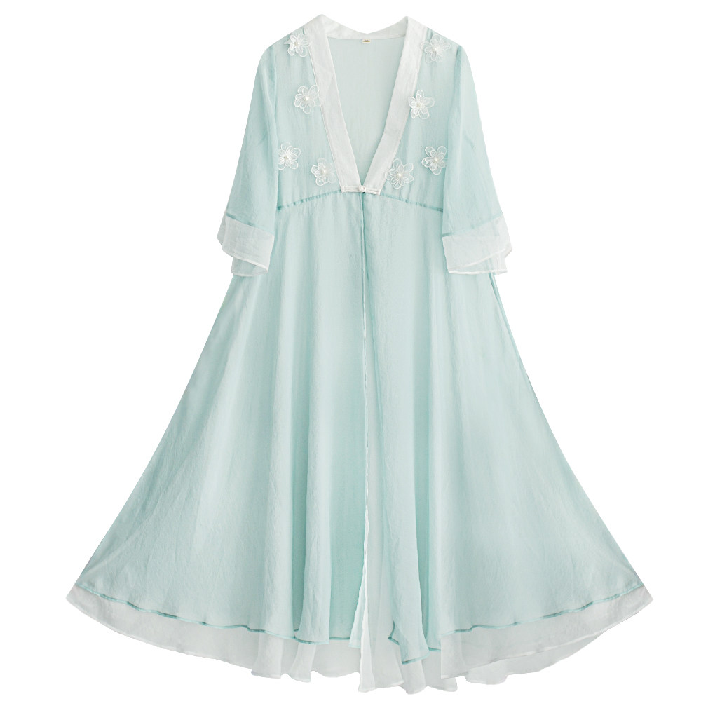 Ретро ханьфу, кардиган, летняя длинная юбка, плащ, из хлопка и льна, в цветочек, защита от солнца