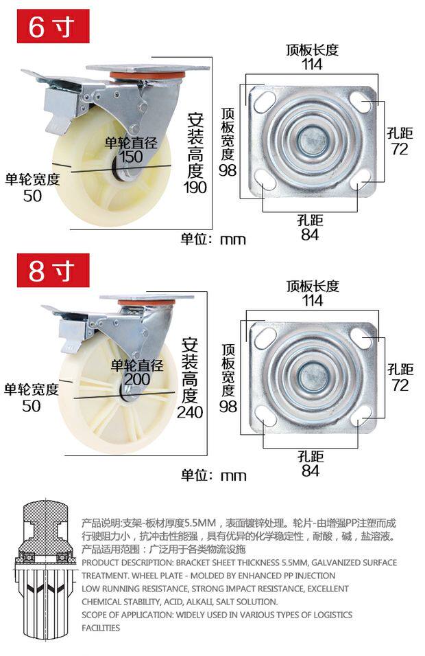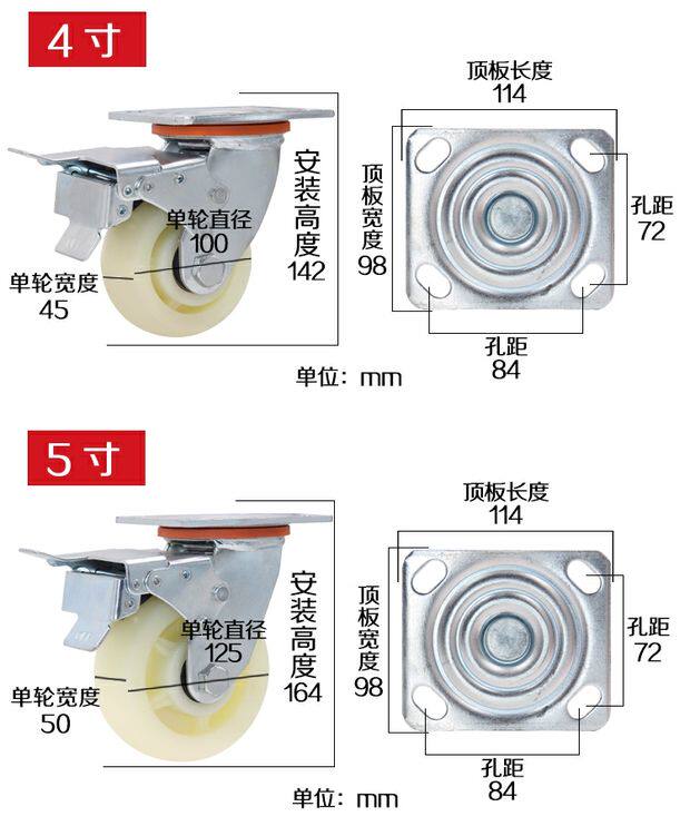 Тяжелая нейлоновая универсальная тележка, колесо, 4 дюймов, 5 дюймов, 6 дюймовая, 8 дюймов, поворотные колеса
