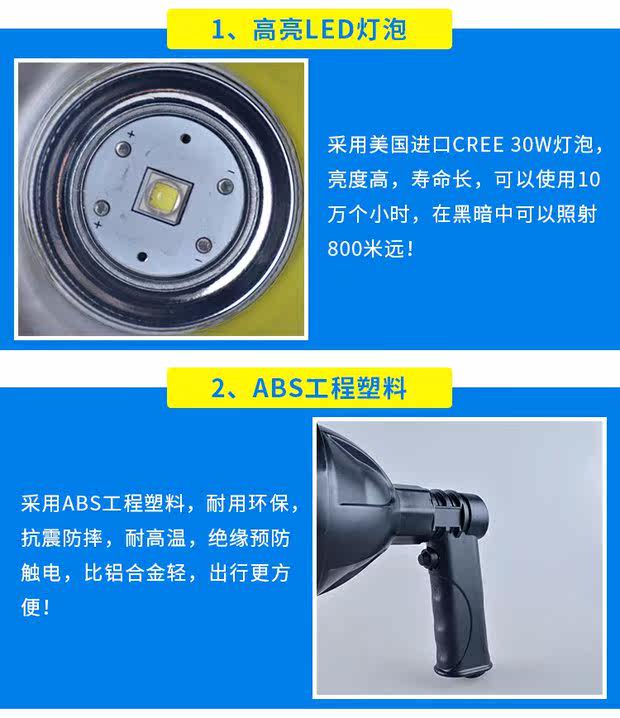 Светодиодный портативный фонарь, морской супер яркий дорожный прожектор, 12v, 30W