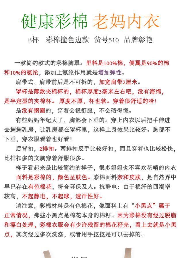 彰艳 Тонкий бюстгальтер без косточек, стеганое хлопковое нижнее белье, бюстгалтер, большой размер, для среднего возраста
