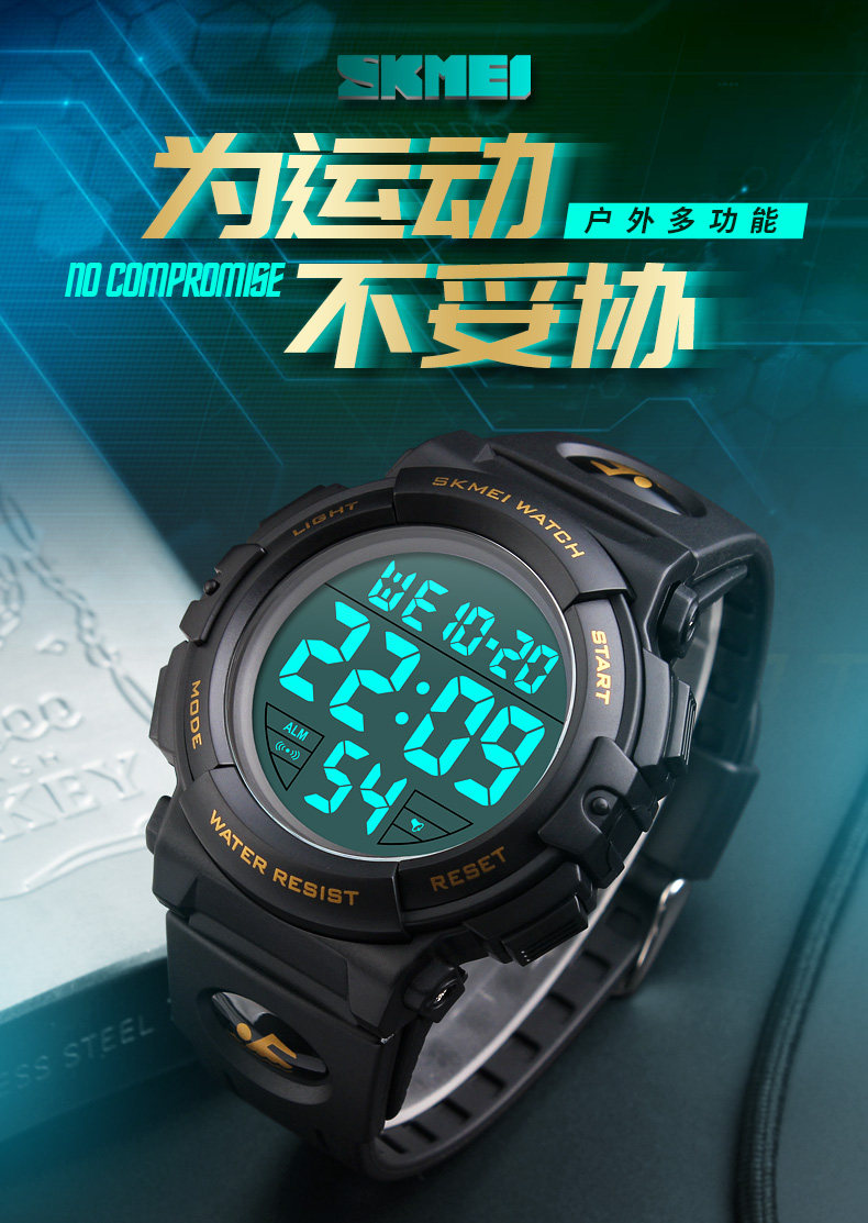 Водонепроницаемый циферблат, универсальные электронные дорожные спортивные трендовые часы
