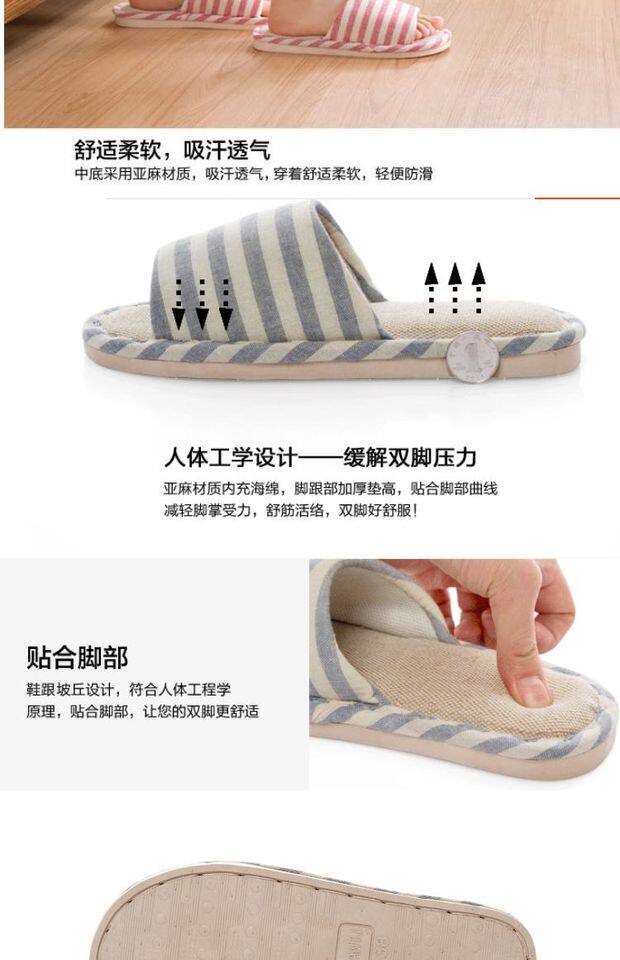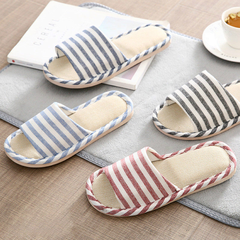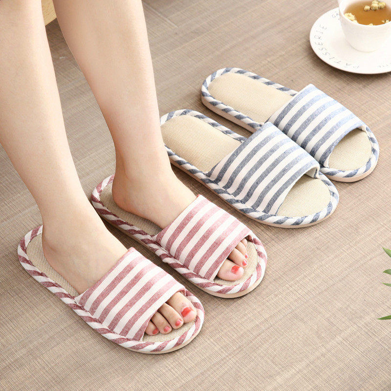 Летние нескользящие тапочки, из хлопка и льна, для влюбленных, мягкая подошва
