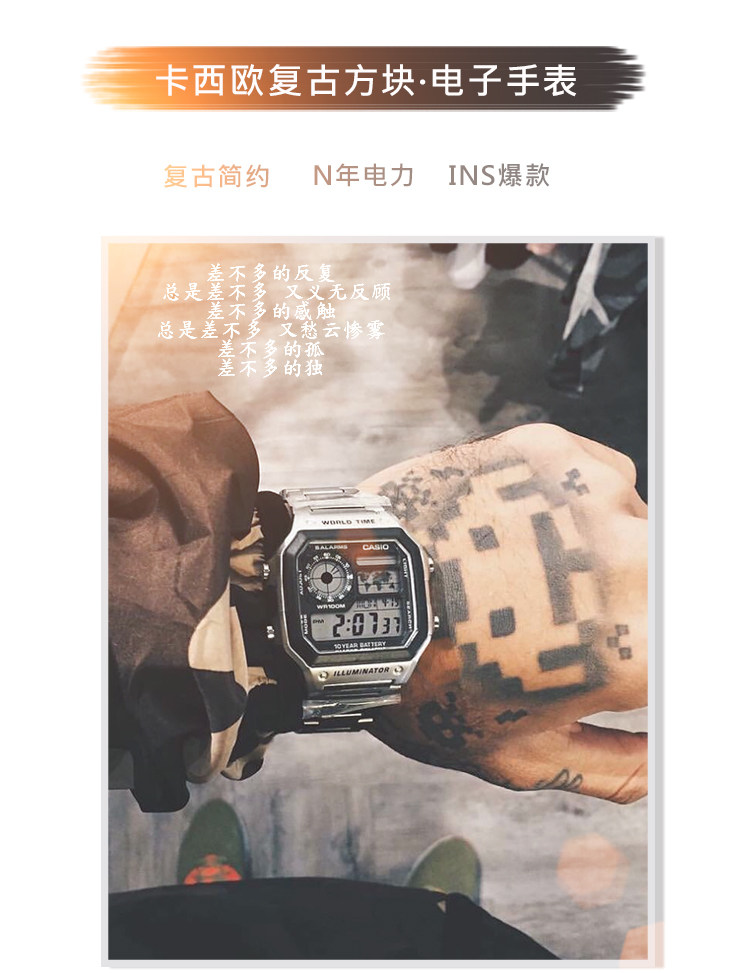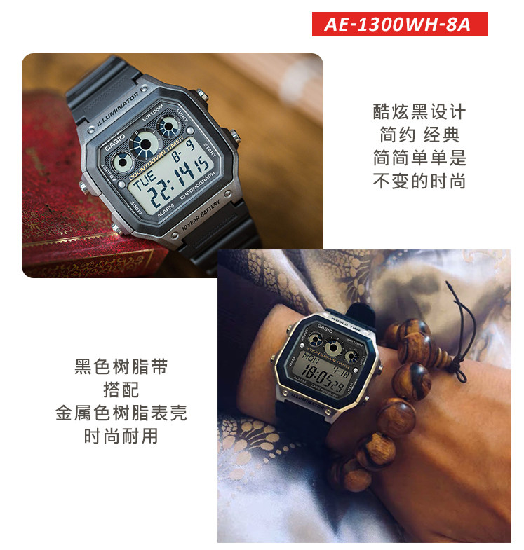 Casio, ретро электронные водонепроницаемые мужские часы