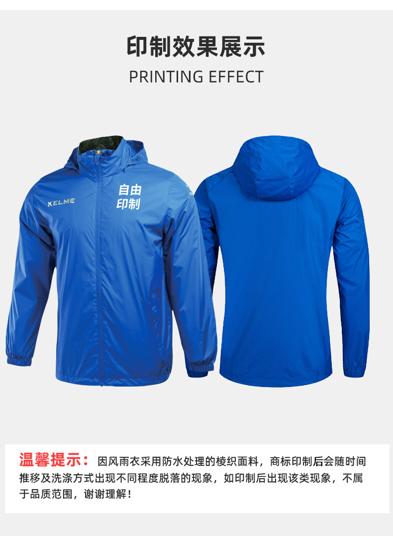 KELME Спортивный футбольный плащ подходит для мужчин и женщин, дождевик для тренировок для отдыха, ветрозащитная водонепроницаемая куртка, делается под заказ