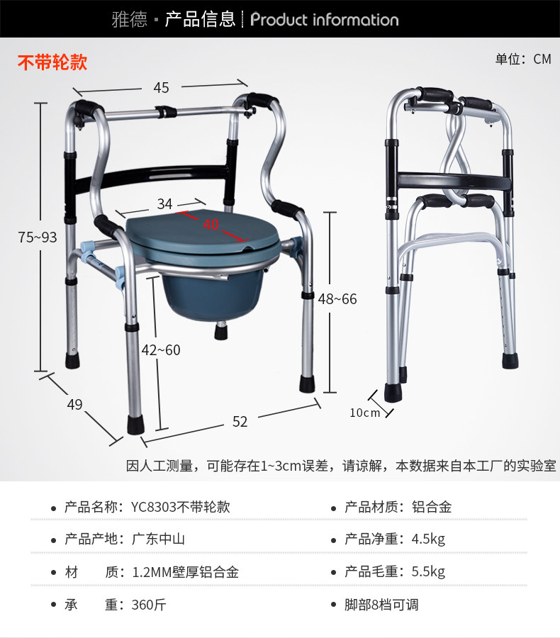 雅德 Возьмите стул, чтобы помочь туалетному туалету и стулу, стул и стул с колесами, ходячим подлокотником, купальным креслом