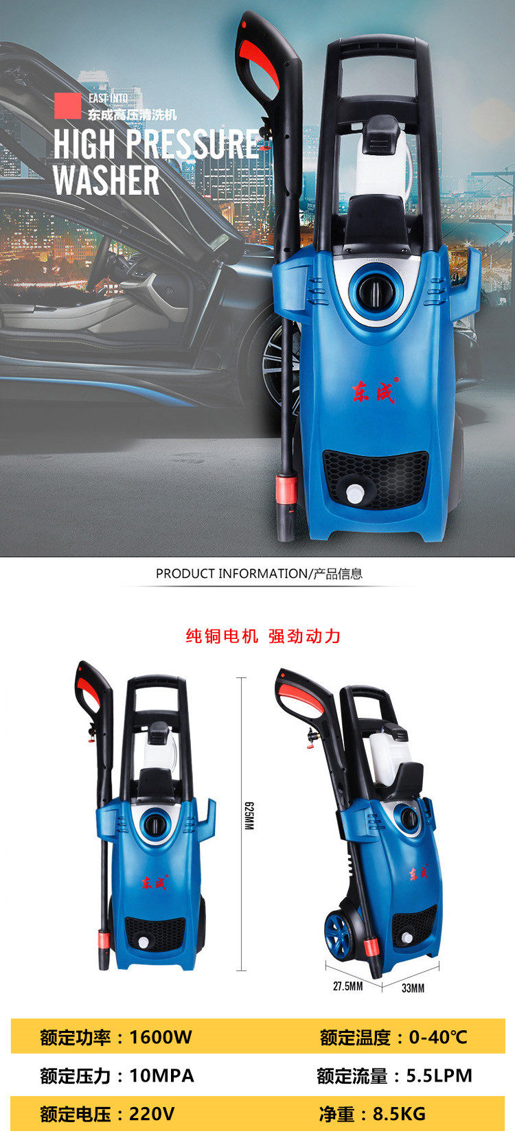 Dongcheng High Dative Machine Machine FF-5,5/7 Портативная автомобильная стиральная машина 220V Домашняя щетка водяной пистолет полный автоматический насос