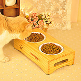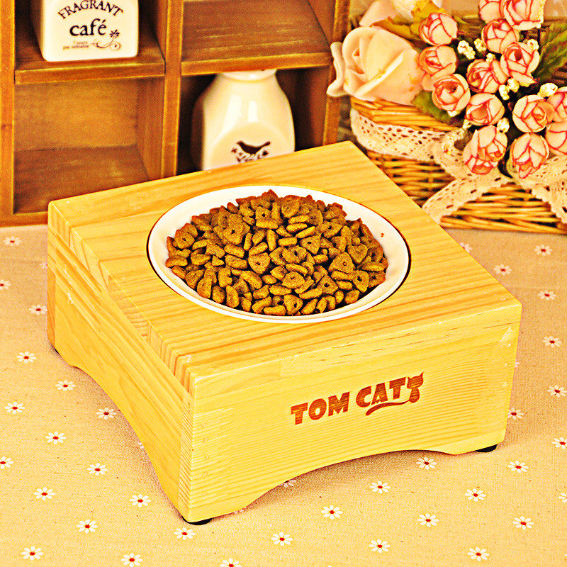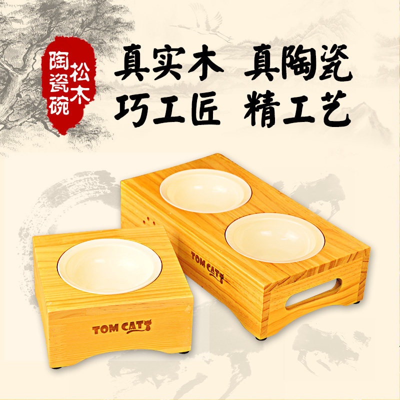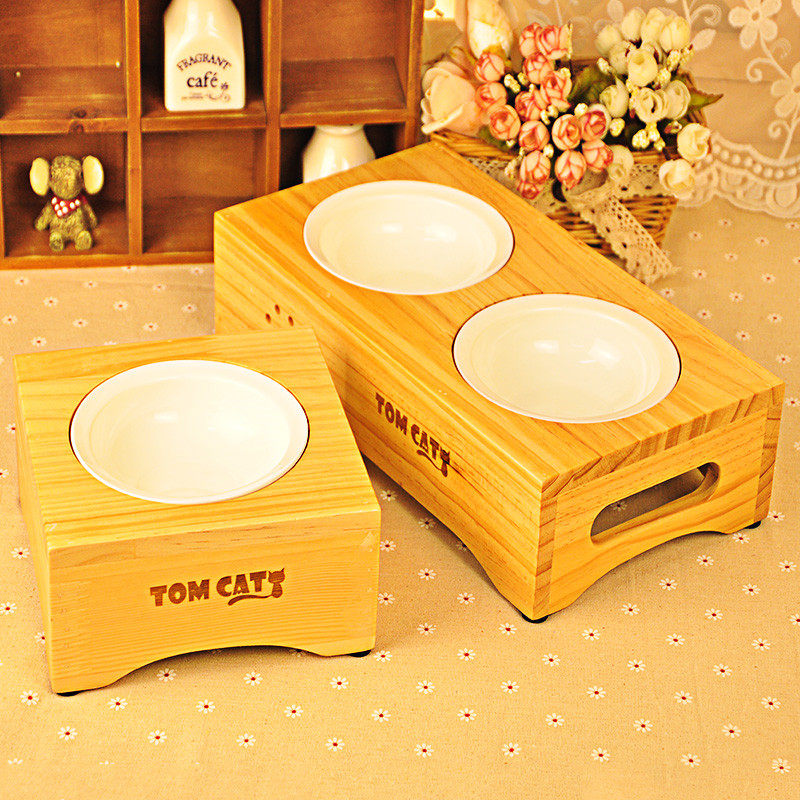 Сплошная древесная керамическая миска для собачьей чаши для кошачья чаша одно миска двойная миска с домашним кормом горшок с рисовой миской сосновой дерево обеденный стол продукты питания