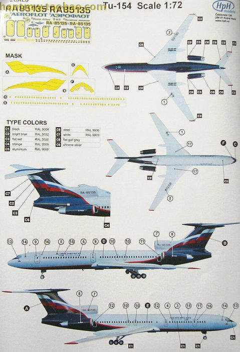 HPH-72006 Рисунок 154M/TU-154M Mival Aviation Пассажирский самолет 1/72 Модель самолета
