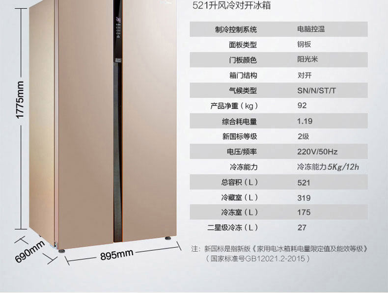 Midea/美的 BCD-521WKM (e) Ультра-тонкий двойной дверной дом.