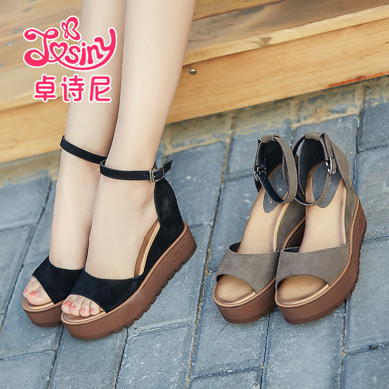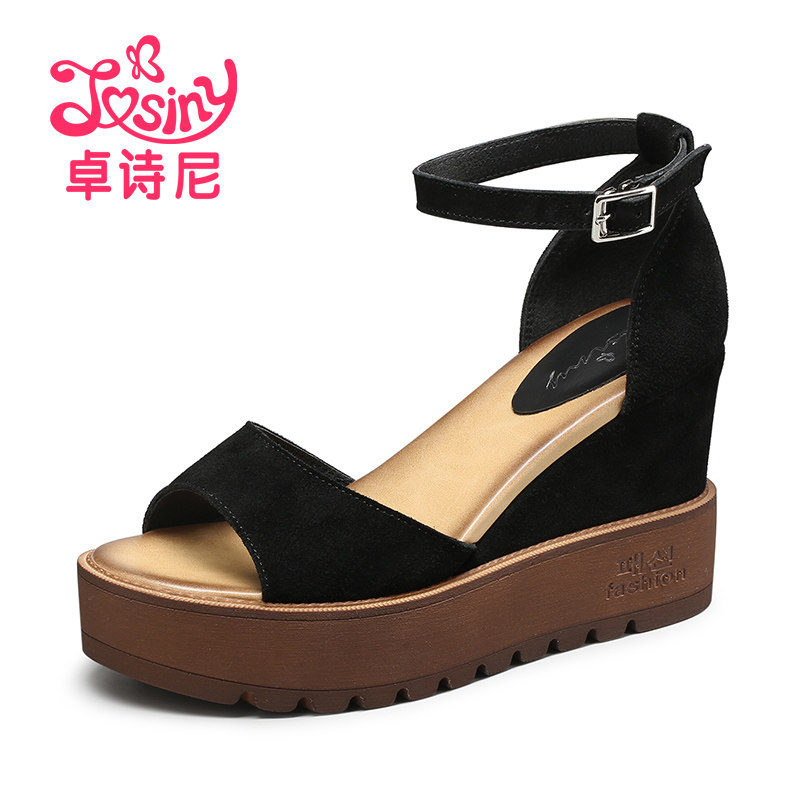 Летние модные универсальные высокие сандалии на платформе, обувь, из натуральной кожи, в корейском стиле