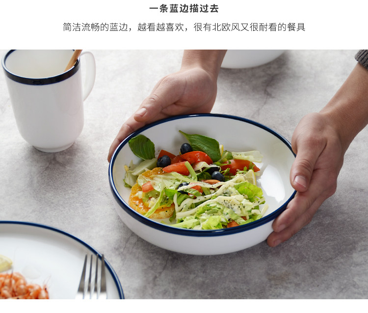 Северная простая штриховая суп -чаша творческая керамика рис крупная домашняя круговая западная сладкая миска с фруктами салатная миска салат