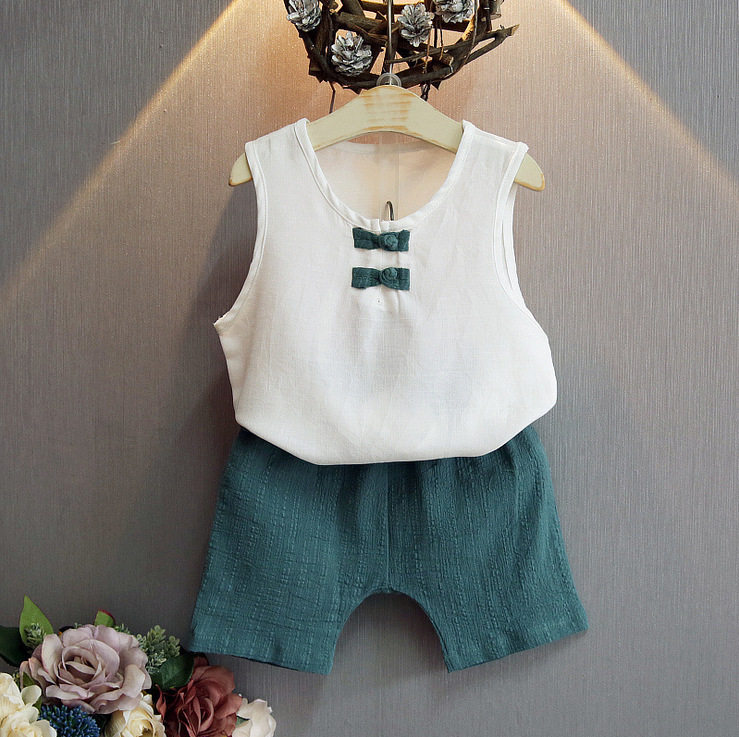 Летняя футболка с коротким рукавом, детский этнический комплект для мальчиков, нарукавники без рукавов, детская одежда, из хлопка и льна, этнический стиль