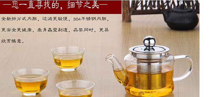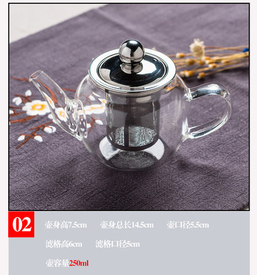 Стеклянный красный (черный) чай, заварочный чайник из нержавеющей стали, маленький прозрачный фильтр, увеличенная толщина, 200 мл
