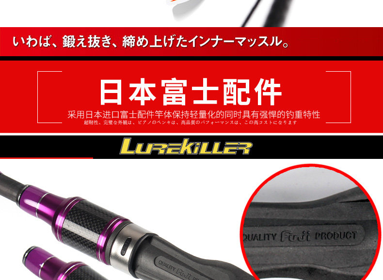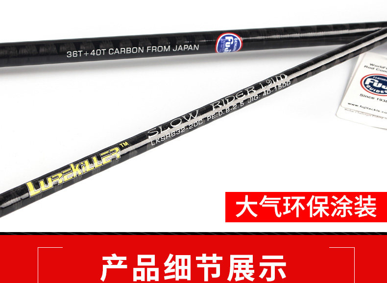 LUREKILLER экспортируется в Японию, Южную Корею, Тайвань, Юго-Восточную Азию, США и Австралию. Новейший железный пластинчатый стержень SLOW JIGGING. Все аксессуары Fuji  1,91 метра  полузащитный глаз.