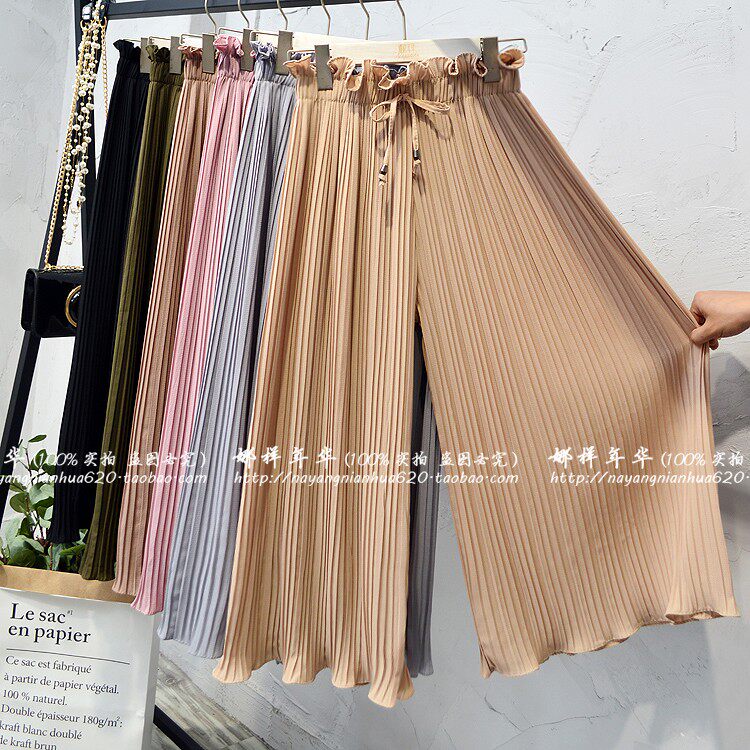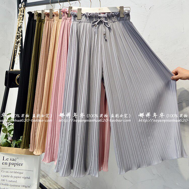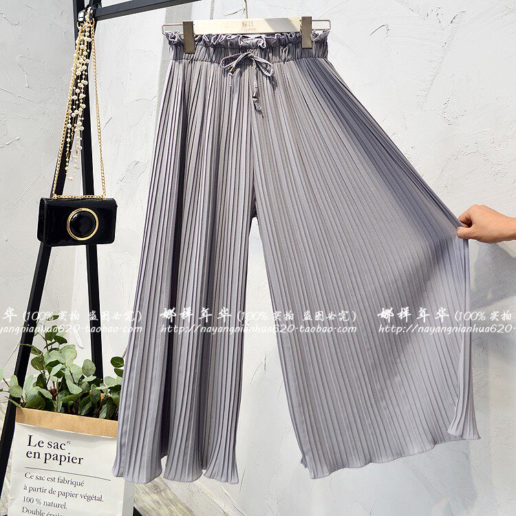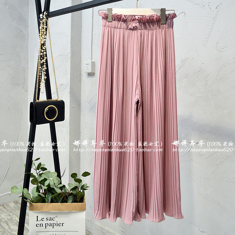 Шифоновые шелковые штаны, в корейском стиле, высокая талия, свободный крой