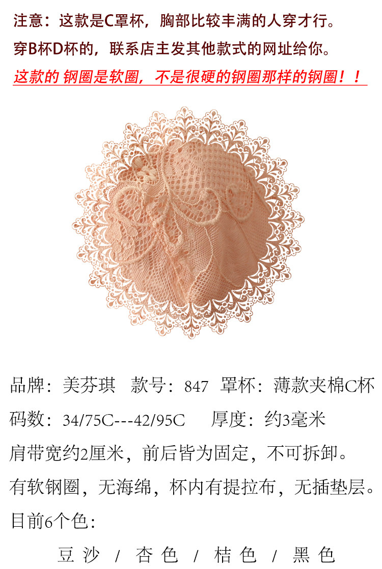 美芬琪 Тонкий стеганый бюстгалтер, кружевное нижнее белье со стальными косточками, большого размера (847)