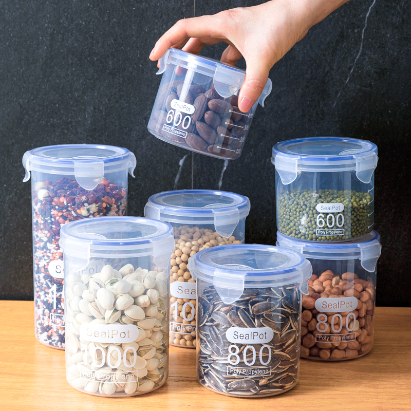 Большая прозрачная пластиковая герметичная банка порошка