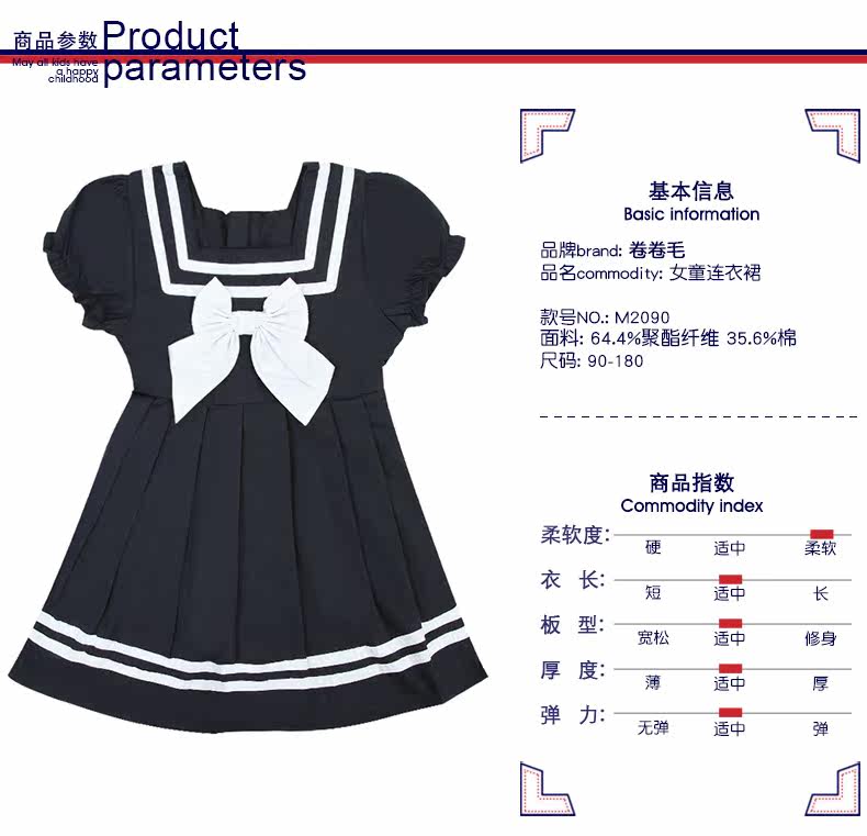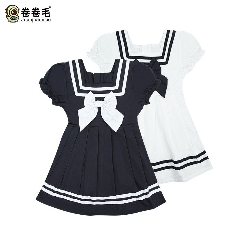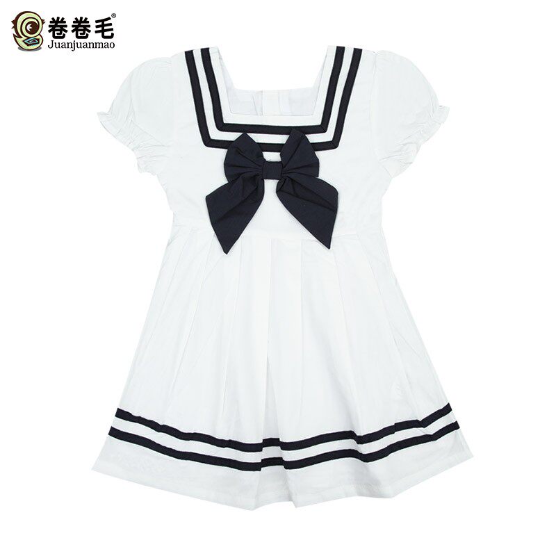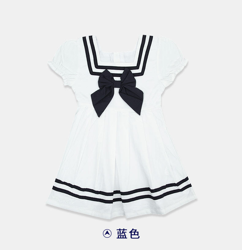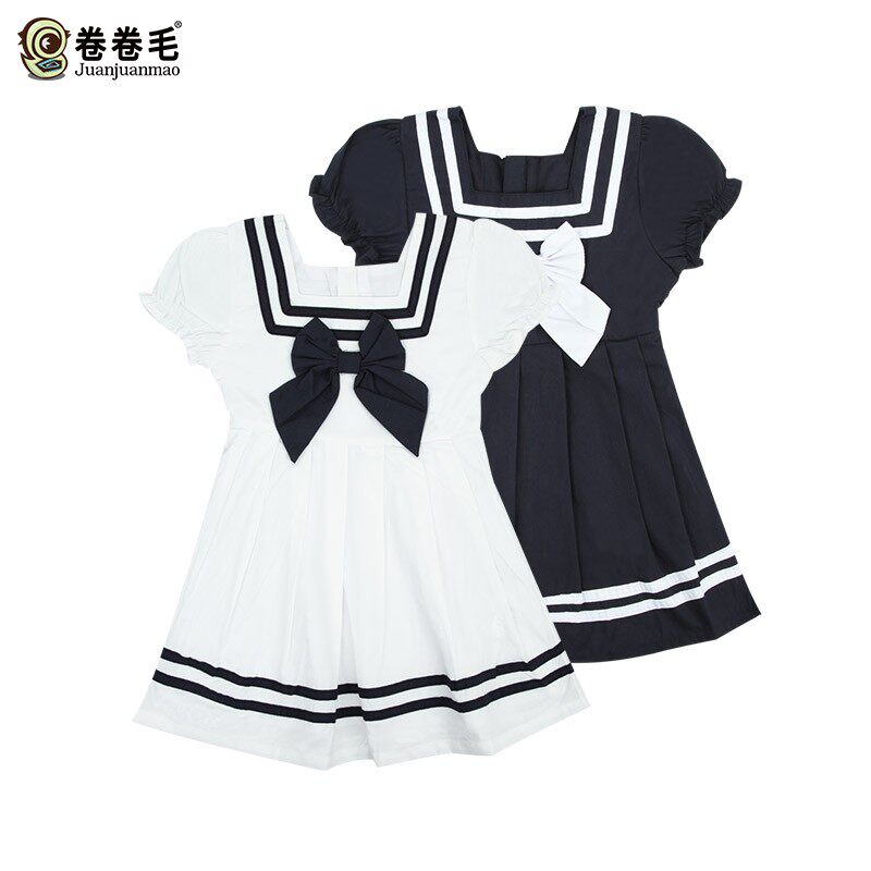 卷卷毛 Летнее платье, юбка, летняя военно-морская летняя одежда, короткий рукав