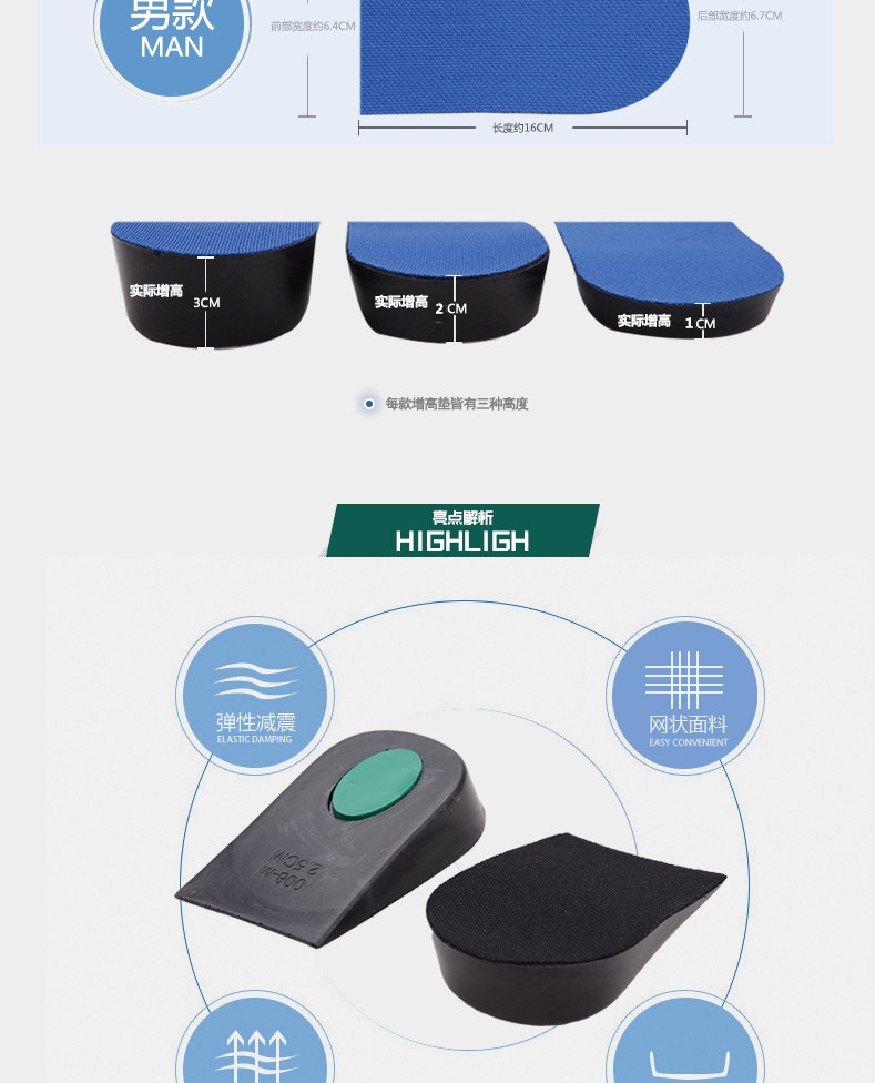 Стельки для увеличения роста, невидимые полустельки, мужские силиконовые полиуретановые напяточники