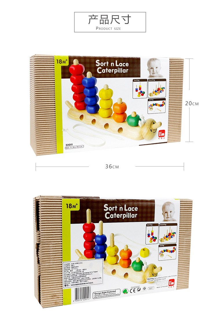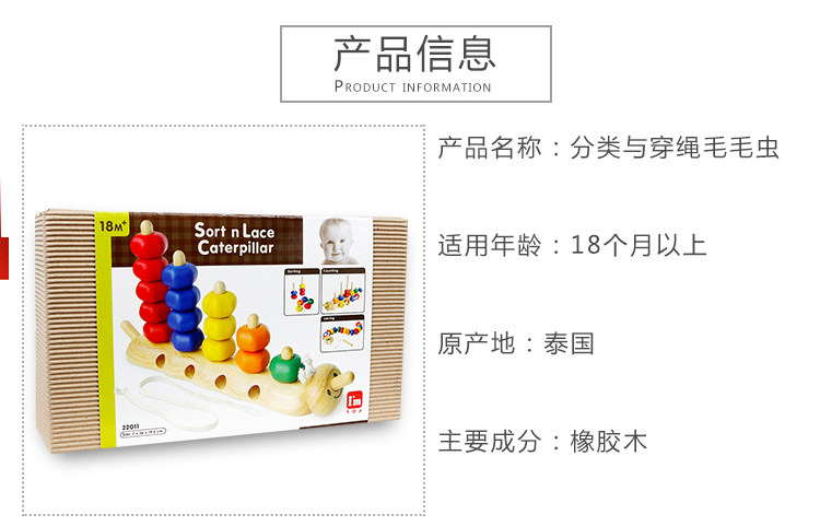 Деревянная интеллектуальная игрушка, сортировка, гусеница, Таиланд