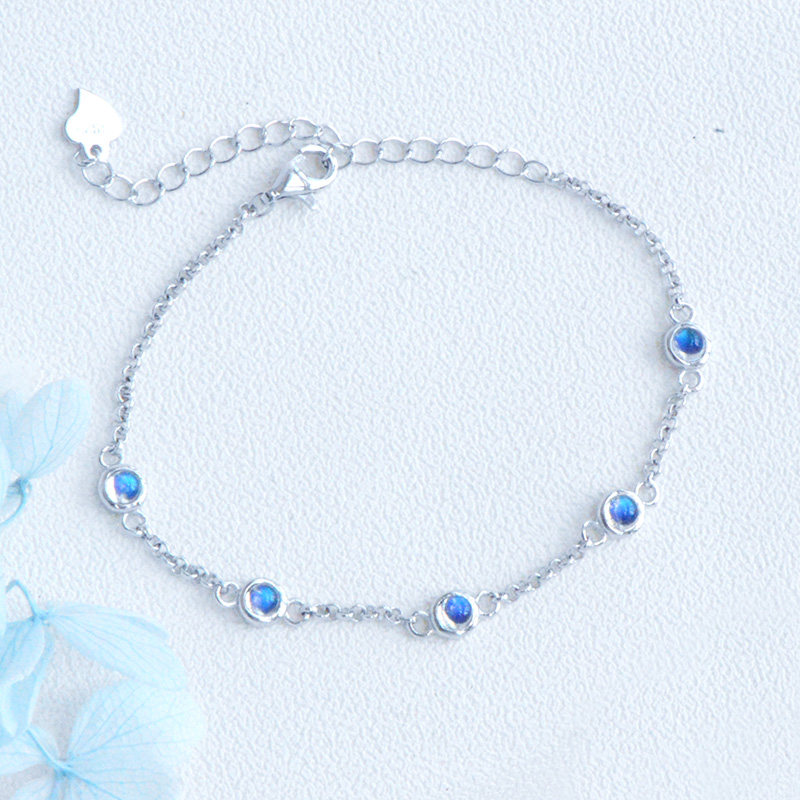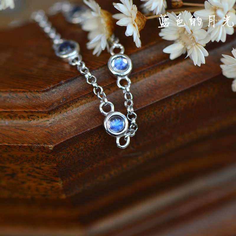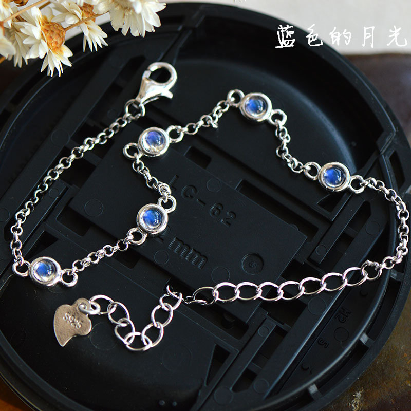 Универсальный браслет на ногу для школьников и студентов из натурального камня из нефрита, лунный камень, серебро 925 пробы, японские и корейские, простой и элегантный дизайн, для влюбленных, подарок на день рождения