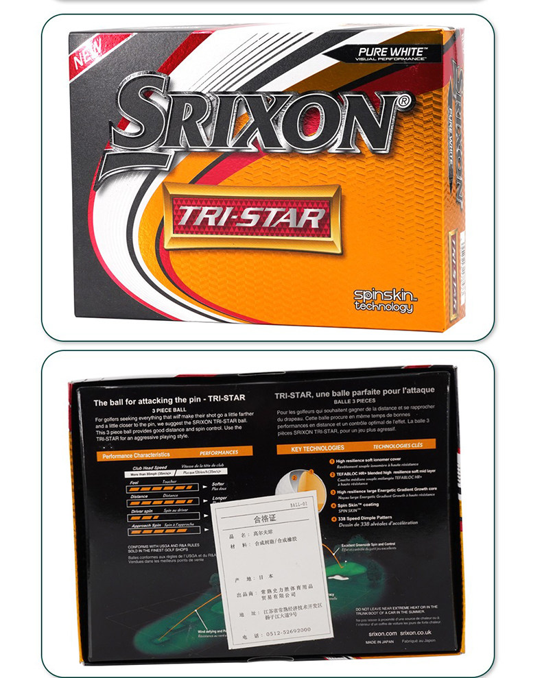 Srixon Shi Lisheng Golf Tri Star 3 -Layer Ball 3 -Layer Ball 3 -Layer Ball Long -Distance Game Printing Printing