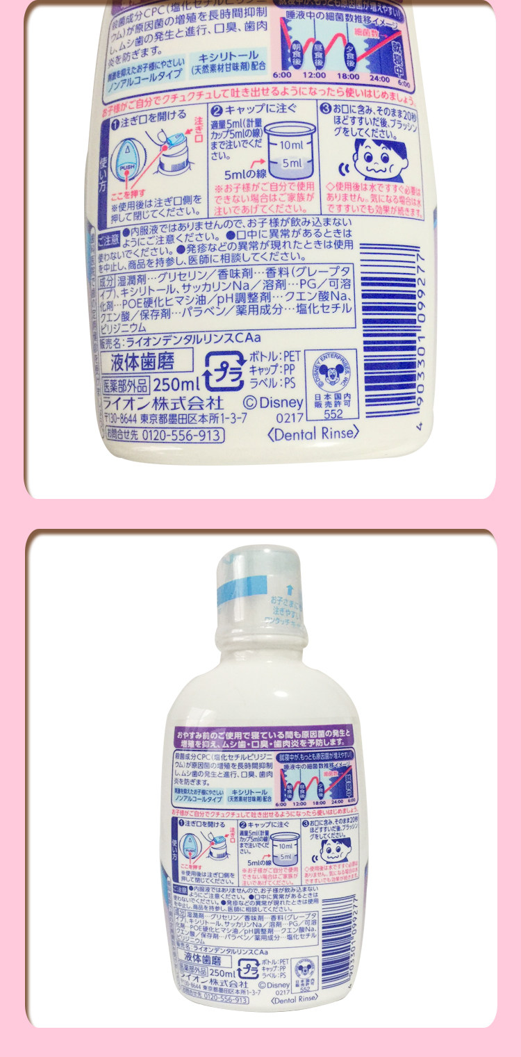 Японский детский антибактериальный ополаскиватель для рта, защита от кариеса, фруктовый вкус