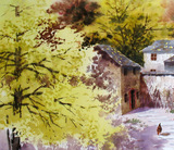 2000 акварельная живопись «Древний коттедж» был выбран на национальной выставке живописи Яйина.