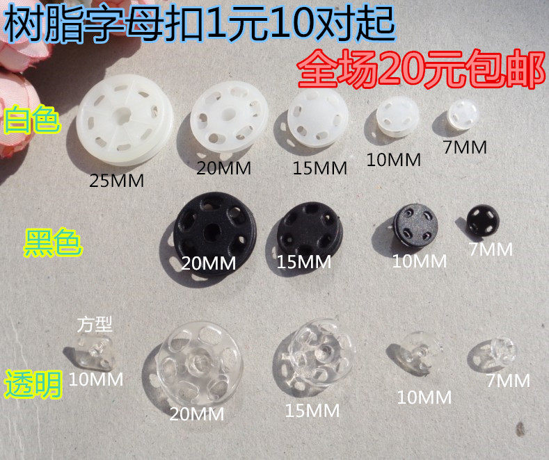 Смола Пластик в соответствии с пряжкой скрытой кнопкой, темной пряжкой матери, прозрачная пряжка прозрачная пряжка 7 мм-25 мм на 20 юаней Бесплатная доставка