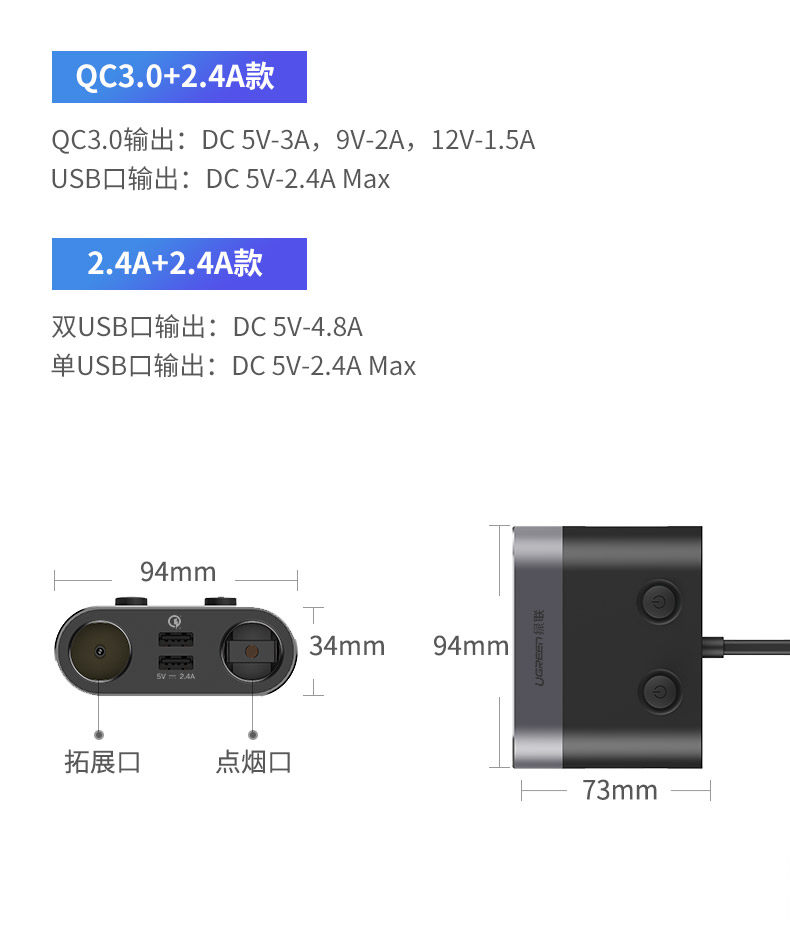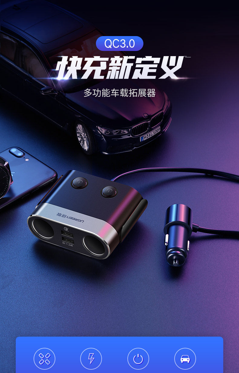 绿联 Подходит для автомобильного зарядного устройства iPhone16 15 PD30W, супербыстрая зарядка, USB-адаптер для автомобильного прикуривателя