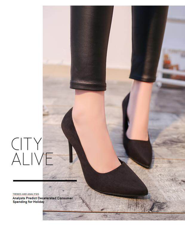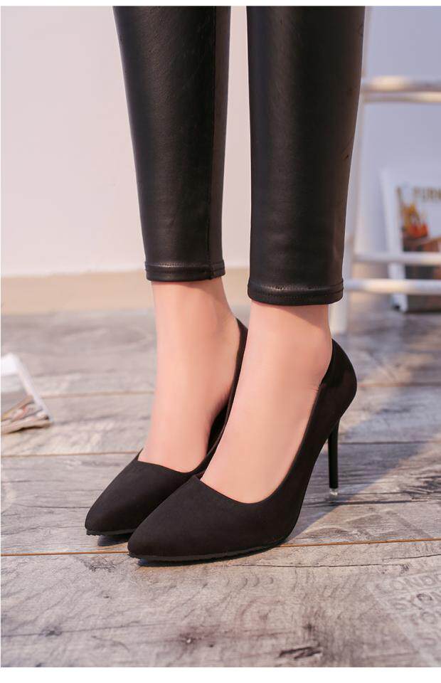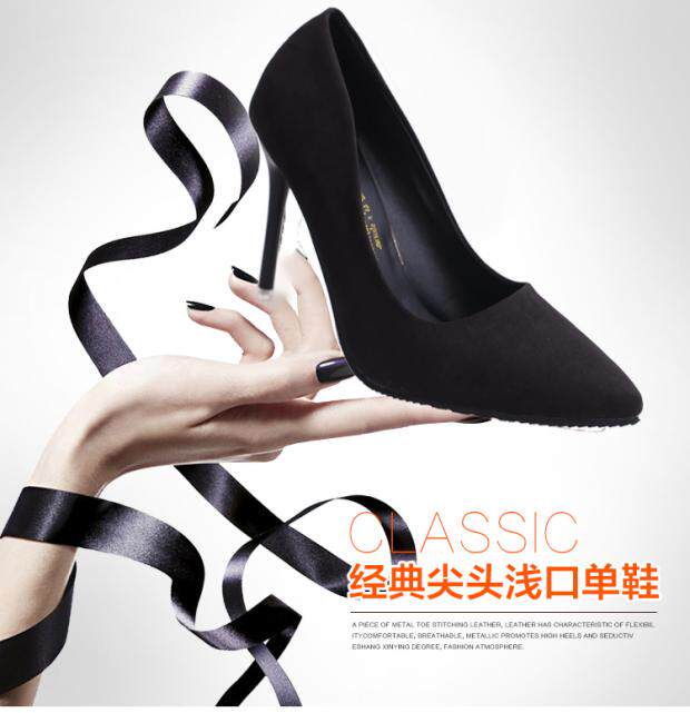 Демисезонные сексуальные туфли на высоком каблуке, замшевые черные милые туфли-шпильки, модель весна/осень 2018 года