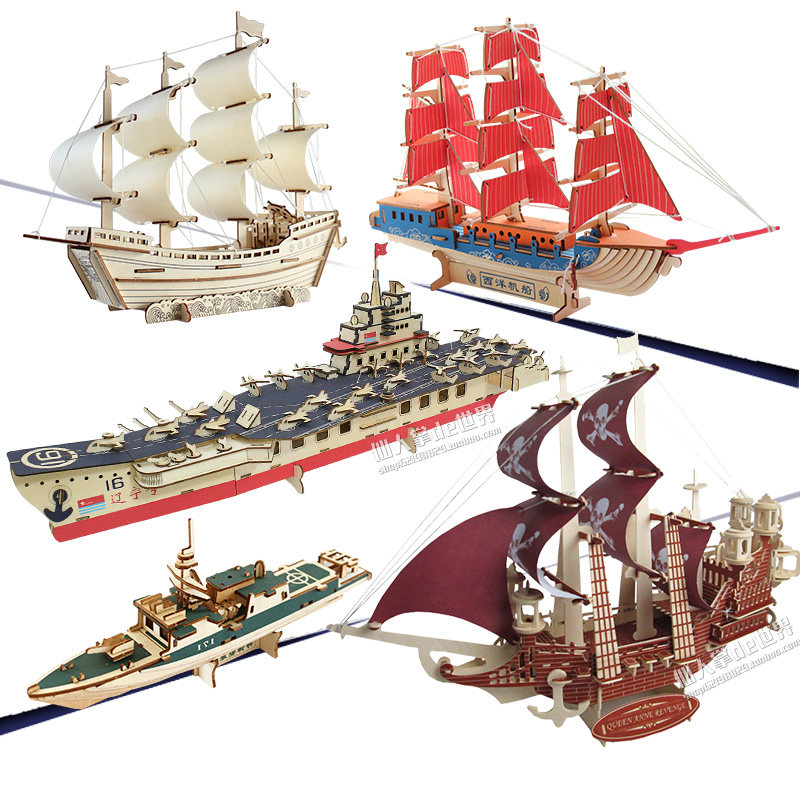 Деревянный конструктор ручной работы, модель корабля, черные бусины, авианосец, DIY