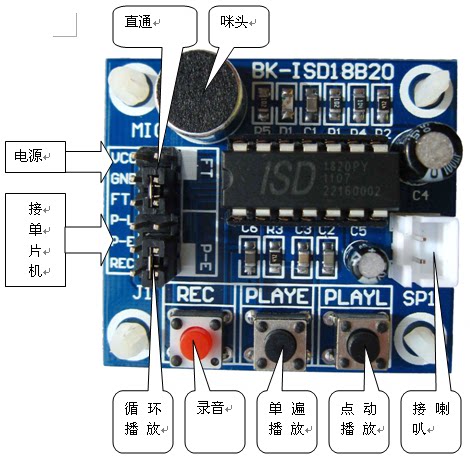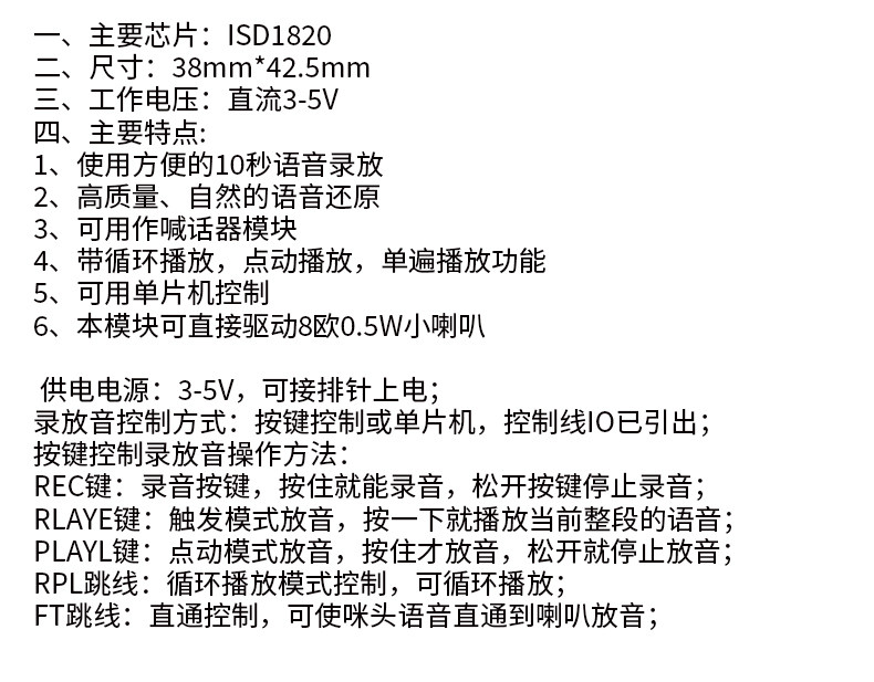 ISD1820 Запись голосового модуля голосового модуля записи модуля воспроизведения с микрофоном, чтобы получить 0,5 Вт динамики