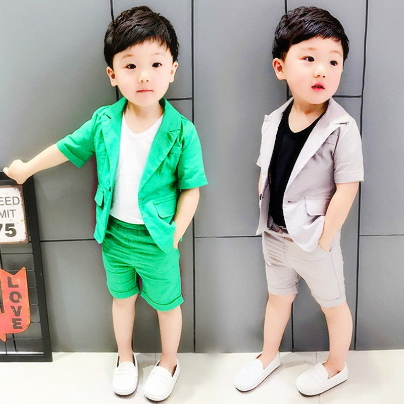 Летняя детская летняя одежда, костюм мальчика цветочника, нарукавники, комплект, платье, короткий рукав