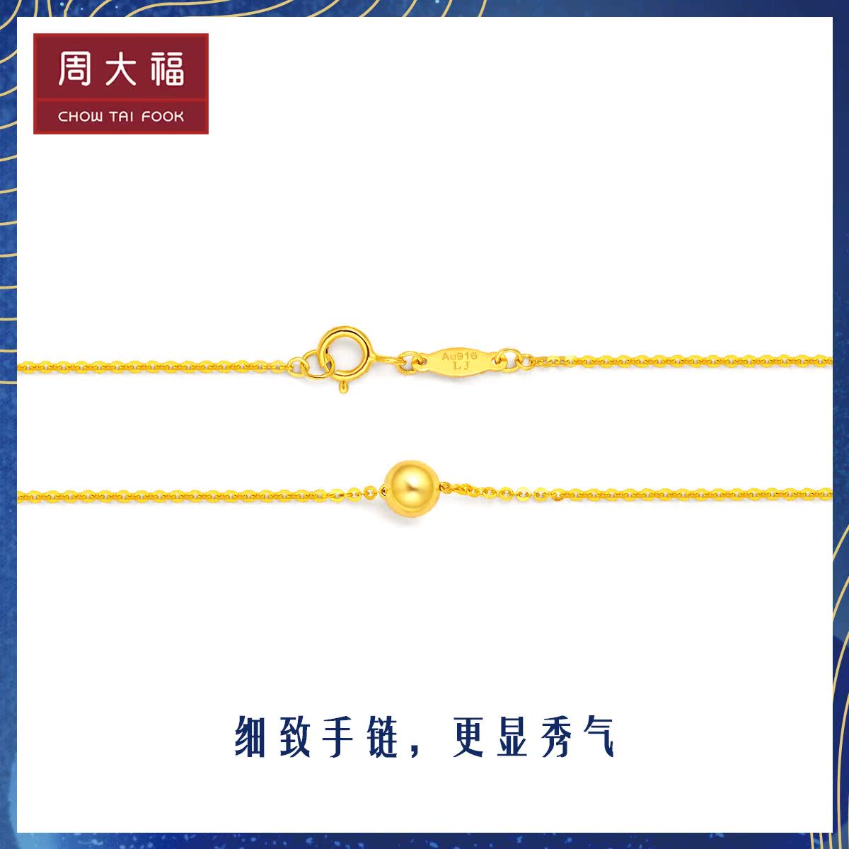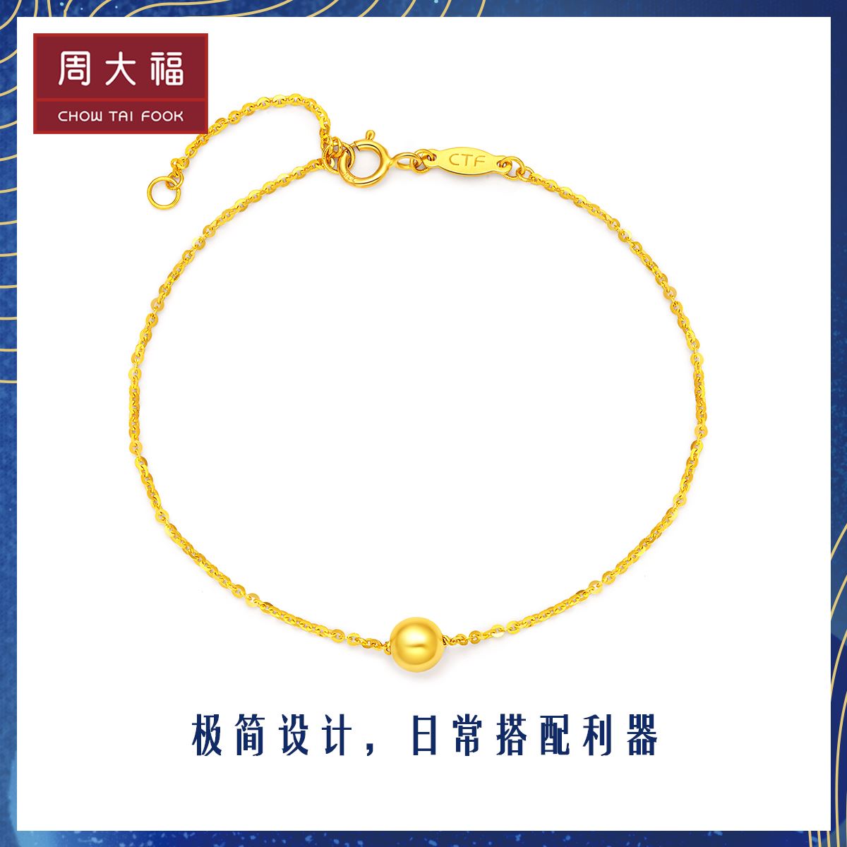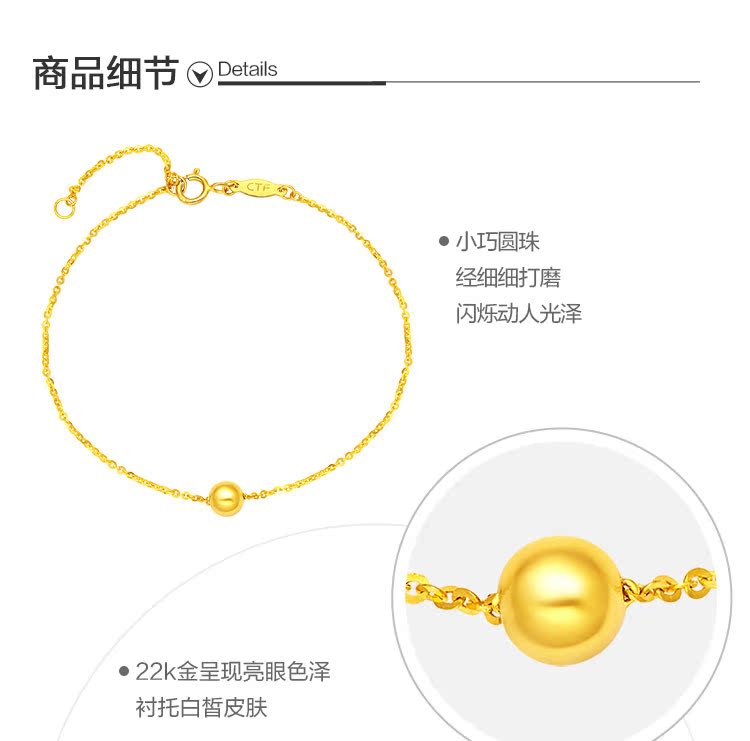 周大福 Ювелирное украшение, изысканный модный браслет, золото 22 карат